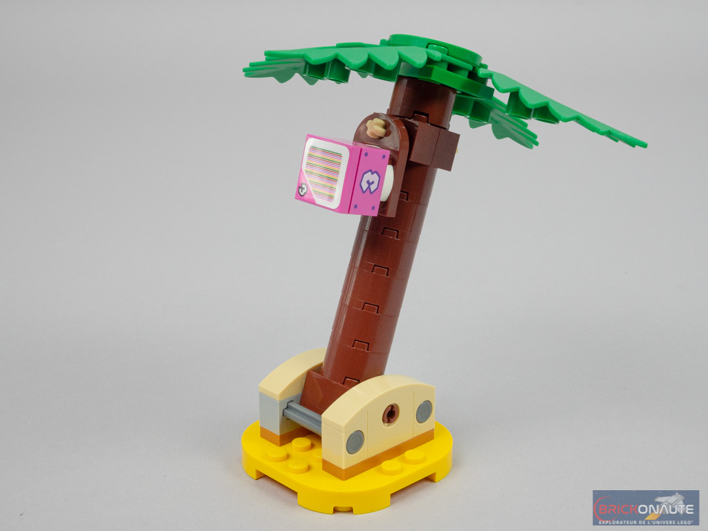 Vient ensuite l’assemblage du « module » comportant le 3ème et dernier bloc à scanner. Il s’agit d’un palmier, articulé à son pied sur des pins Technic. En le faisant basculer, on fait tomber le bloc que l’on peut alors scanner (même si, techniquement, il est également scannable dans l’arbre).