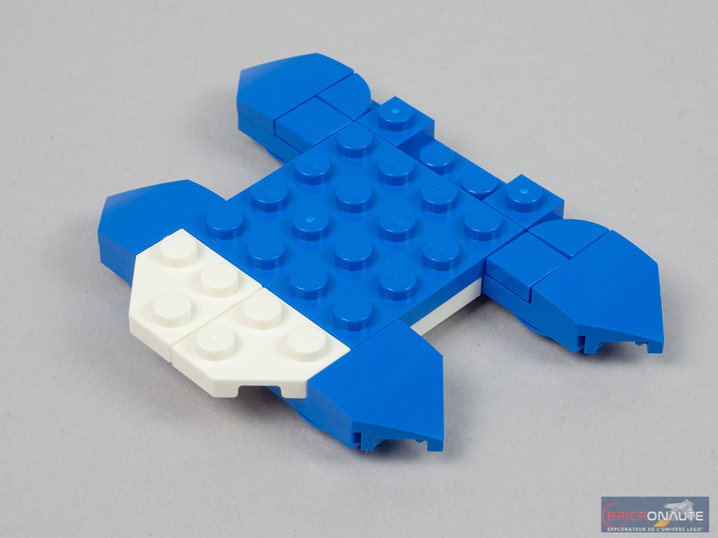 Comme avec les autres sets de la gamme, la construction commence par un personnage. Et ici, c’est logiquement le dinosaure Dorrie qui est à l’honneur. La conception du corps est plutôt simple : il s’agit d’empiler quelques plates, et d’y adjoindre des slopes habituellement dédiées aux carrosseries pour constituer les nageoires. Le cou est constitué d’éléments SNOT recouverts de pièces blanches, et la tête reprend le masque et sa lanière rouge porté par la bestiole.