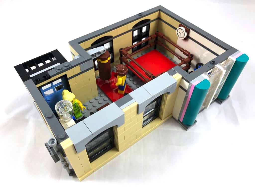 On ne trouve pas de « fonctionnalités » à proprement parler, comme elles peuvent exister dans le 10251 – Brick Bank ou encore dans le 10246 – Detective’s Office. Néanmoins, les espaces disponibles sont importants, et permettent de se raconter une grande variété d’histoires dans les trois environnements proposés. LEGO a également fait l’effort de laisser des tenons apparents dans le Diner et sur le trottoir, c’est appréciable. Par contre, l’ajout d’accessoires supplémentaires (notamment dans le studio) aurait été appréciable.