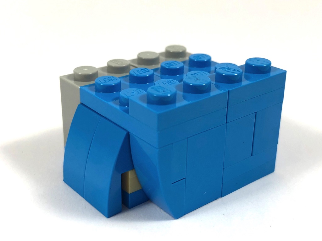 L’arrière est un assemblage simpliste constitué de deux plates surmontées de deux grandes slopes. Dommage après les efforts fournis sur le reste du modèle ! Les deux côtés sont en revanche très bien réalisés, avec la tresse d’Elsa qui vient se poser sur son épaule gauche. On termine la construction en assemblant le socle d’exposition habituel.
