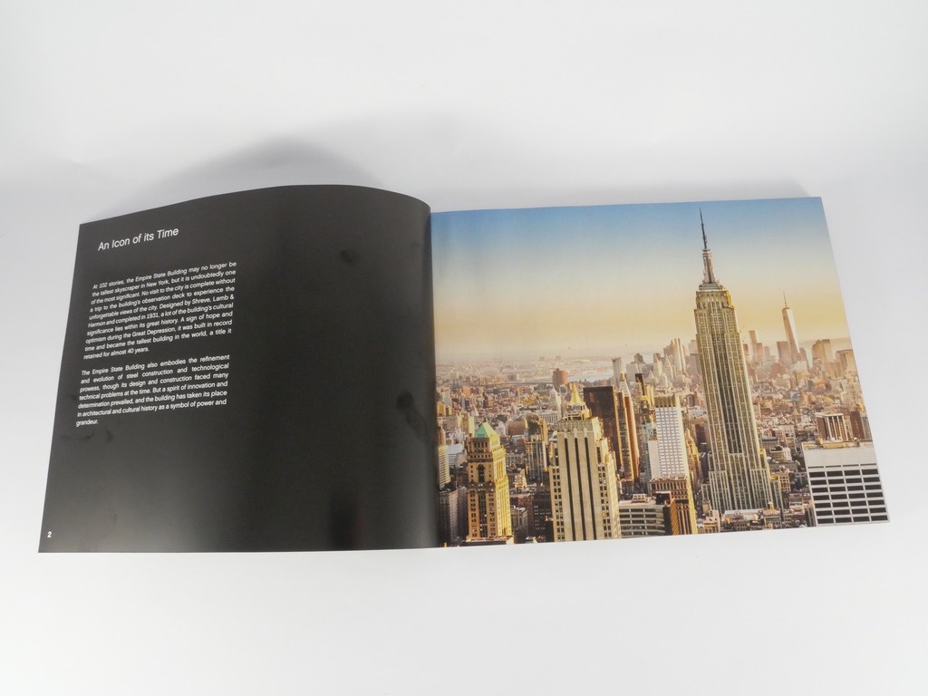 Une des choses que j’adore avec la gamme LEGO Architecture, c’est la présentation de la boîte. On retrouve ici la finition « premium » habituelle, avec sur la face avant notre modèle présenté sobrement sur un fond noir. On en trouve un schéma sur le côté, tandis qu’au dos le modèle LEGO est présenté à côté d’une photo de l’immeuble new-yorkais. Les dimensions du modèle sont indiquées, laissant présager un modèle impressionnant une fois construit : la base est large de 205mm, et l’immeuble est haut de 550mm !