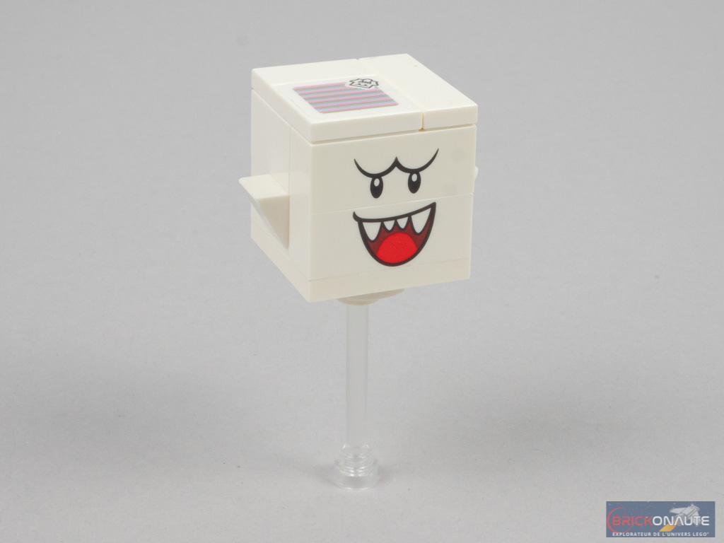On assemble ensuite le deuxième (et dernier) ennemi, le très classique fantôme Boo. Là encore, il ne suffit pas de lui sauter dessus pour le vaincre, il s’agira d’être sous l’effet d’une étoile d’invincibilité ou de disposer de l’Ectoblast (comme pour M. Marais). Nous construisons ensuite deux pans de murs identiques, chacun disposant d’une fenêtre, qu’on vient disposer de part et d’autre de la porte. Puis on s’occupe de l’Ectochien (Polterpup) et de sa petite plateforme.