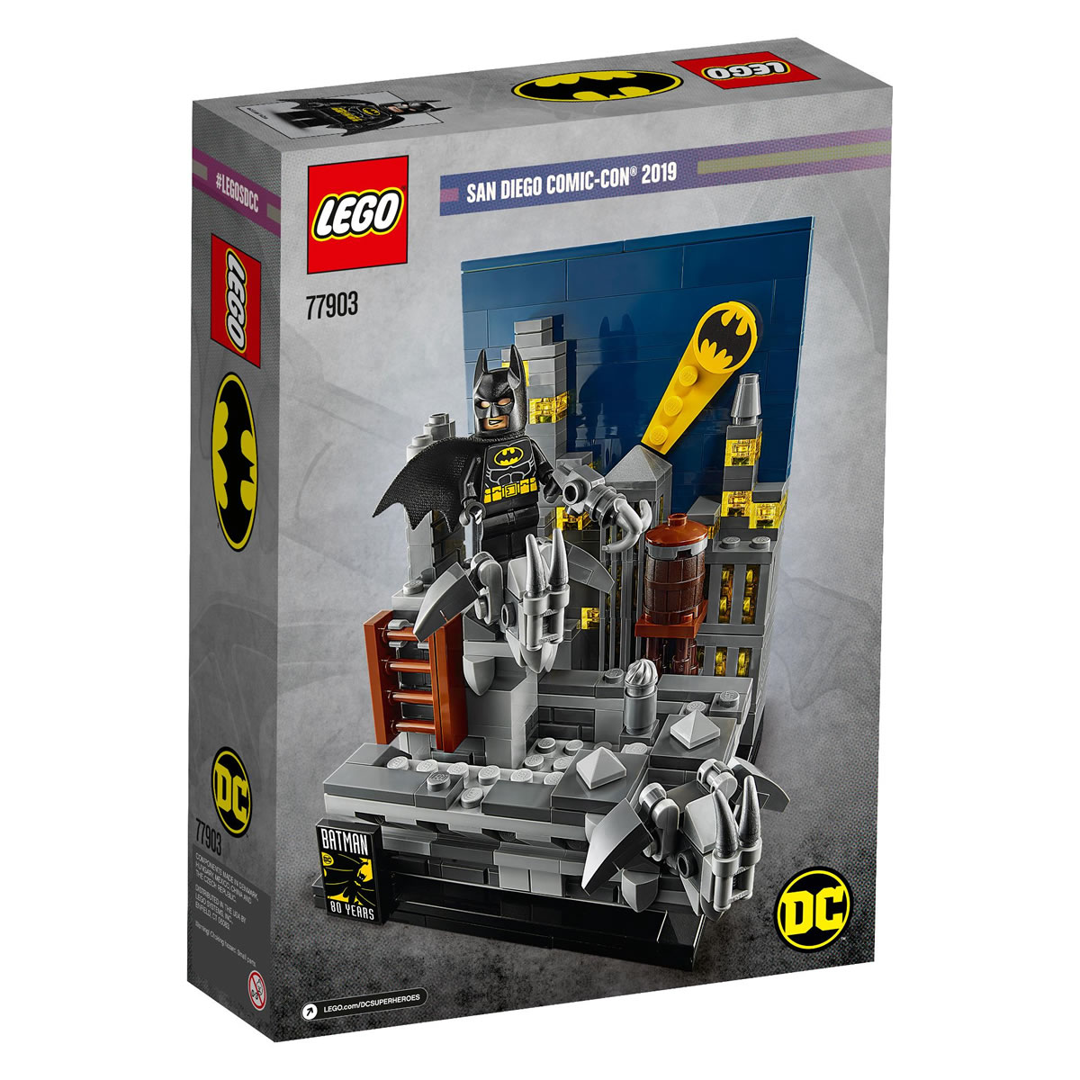 Après le set 77902 – Captain Marvel and the Asis, on passe du côté de chez DC Comics avec cette autre exclusivité attendue pour la San Diego Comic Con. Le set 77903 – The Dark Knight of Gotham City célèbre en effet, à sa manière, les 80 ans du justicier Batman. Contrairement au set Marvel, la minifig présente dans cette boîte n’est pas exclusive.