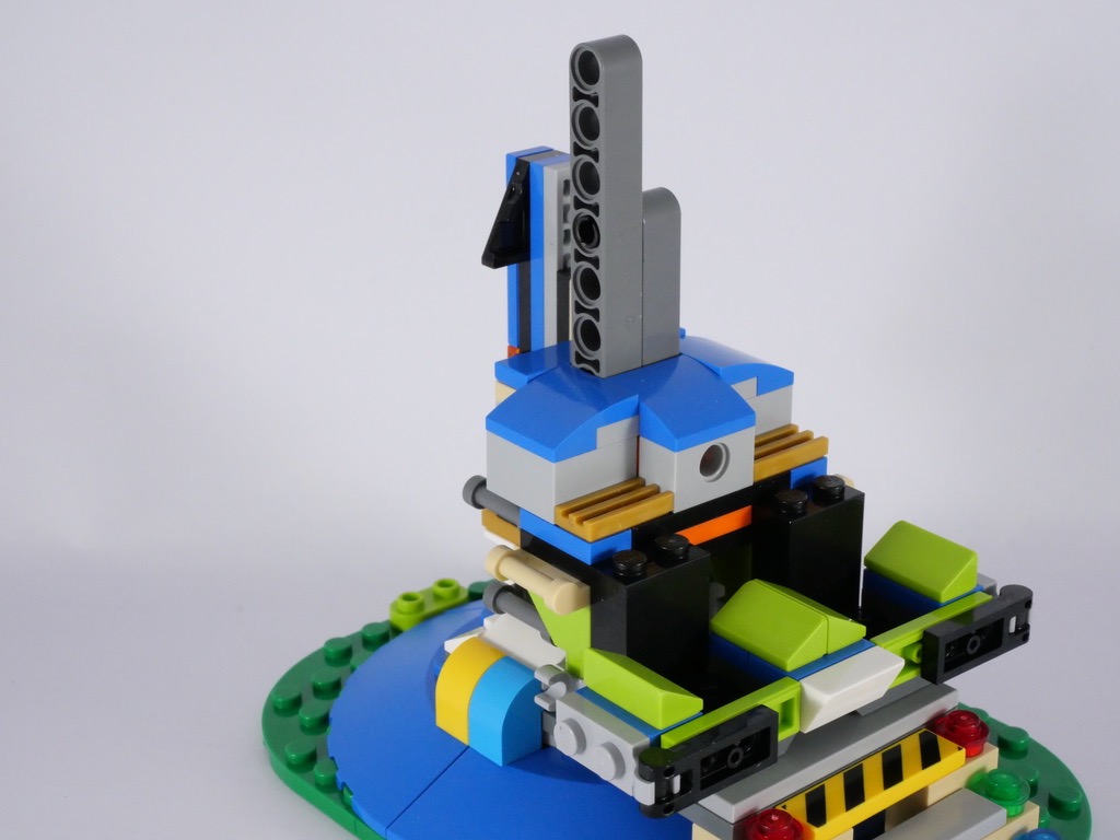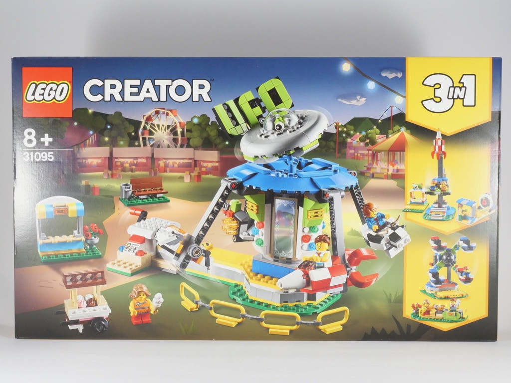 Ce modèle Creator 3en1 m’a bien tapé dans l’oeil après celui du Pirate Roller Coaster ! Plutôt réussi et orignal avec son thème UFO, les modèles secondaires un peu passables il est vrai. Une quatrième minifig n’aurait pas été de trop, pour remplir le denier emplacement disponible ou même faire le forain du manège.