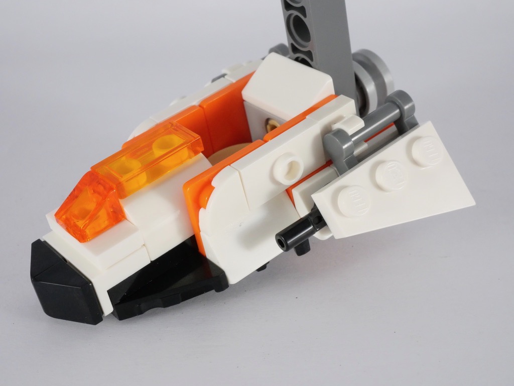 Je commence par un petit coup de gueule. Comme (trop) souvent dans cette gamme LEGO Creator 3in1, nous avons ici un modèle principal joliment réalisé, bien détaillé et bien fini. À côté de cela, les deux modèles alternatifs ne sont clairement pas à la hauteur. C’est d’autant plus dommageable qu’il reste, à la fin de la construction de ces 2 modèles, un très grand nombre de pièces qui permettrait sans trop d’efforts d’améliorer la qualité globale de ces derniers. Pour le coup, je ne suis pas bien sûr que la mention « 3in1 » placardée sur la boîte soit vraiment méritée…