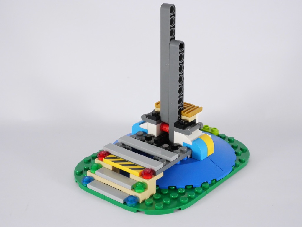 Vous l’aurez compris, la construction de ce troisième et dernier modèle est loin d’être aussi intéressante que le modèle principal. Et comme pour la tour de chute libre, on regrettera de grosses lacunes de design : la base est vraiment moche, les supports et le cube abritant le mécanisme ne sont même pas décorés, et les nacelles sont vraiment trop simplistes… La « grande roue » n’a de grande roue que le nom que LEGO a voulu lui donner. C’est pour cela que j’ai ajouté les guillemets…