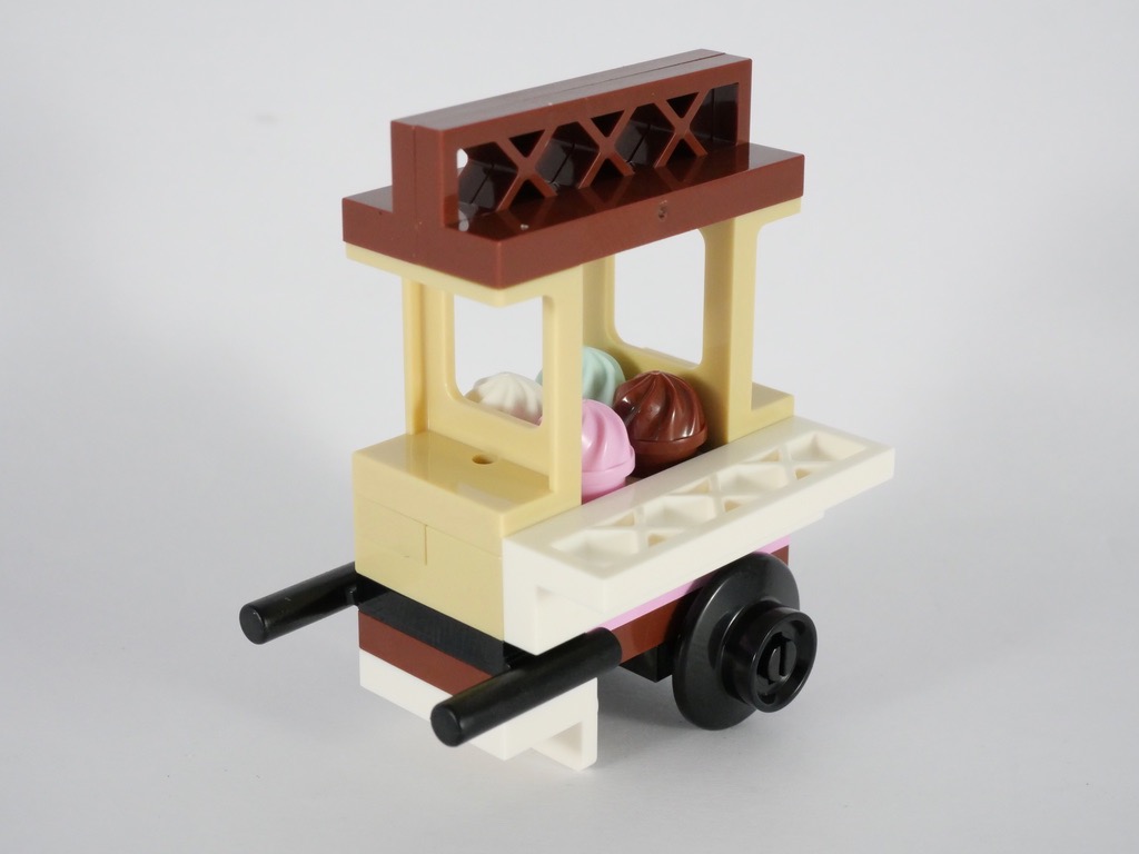C’est le modèle principal, et incontestablement le plus sympa à construire. On commence par 4 petits ensembles annexes avant de s’attaquer au manège à proprement parler : un banc, un chariot à glaces, une guérite pour les tickets et quelques barrières de protection.