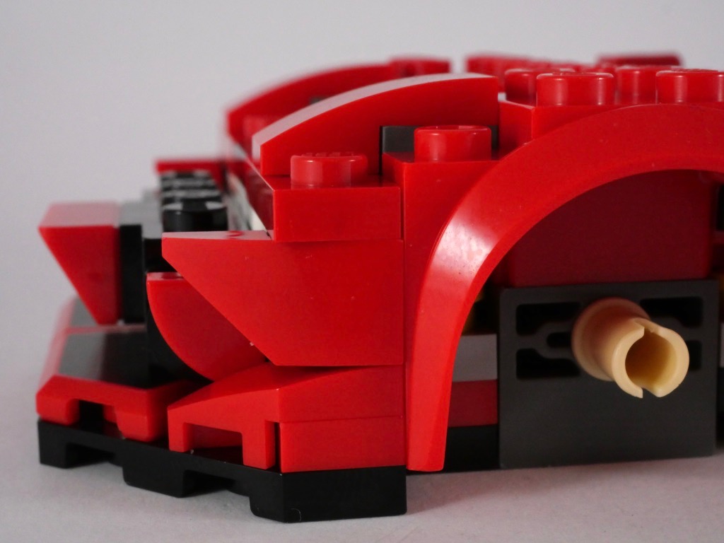 Alors qu’est-ce que ça vaut ces LEGO Speed Champions nouvelle mouture, d’une largeur de 8 tenons ? Et bien c’est pas mal du tout. Jusqu’à une certaine étape, j’ai même songé à offrir à ce set le « label qualité » Brickonaute, une récompense très personnelle décernée à une poignée de sets par an. Je me suis ravisé lorsque j’ai appliqué les autocollants sur les phares. J’ai trouvé dommage qu’à cette échelle, LEGO n’arrive pas à nous proposer une solution plus élégante.