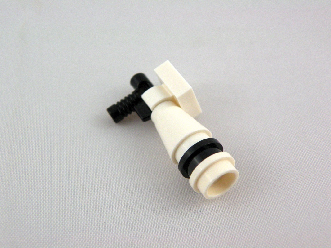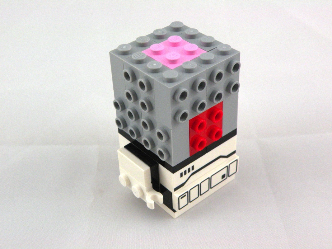 On termine la construction en assemblant les jambes, qui elles ont fait l’objet d’un traitement particulier, habillées de tiles blanches rappelant l’armure des Stormtroopers. Bon point également pour le pistolet blaster, composé de simplement 5 pièces mais plutôt convaincant.