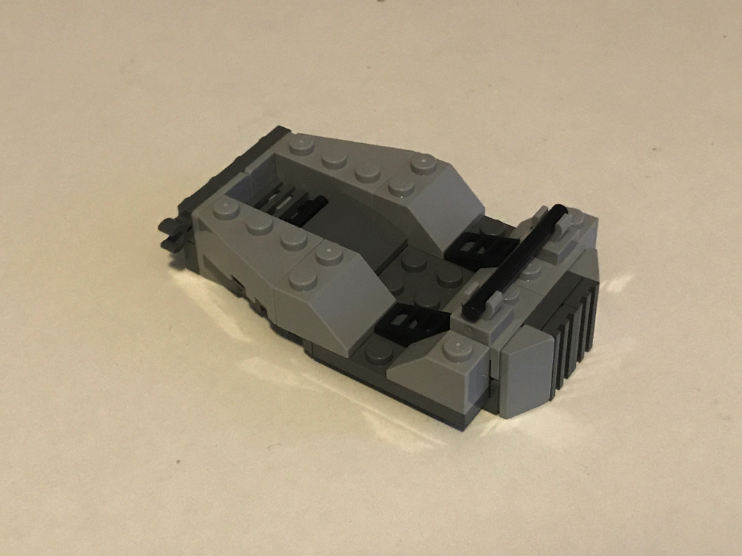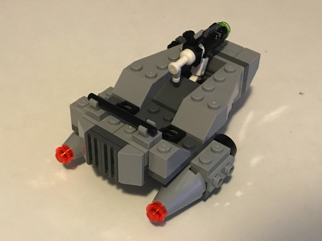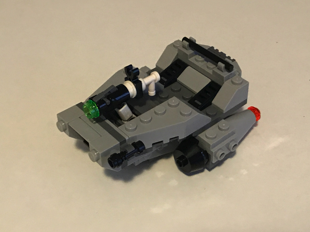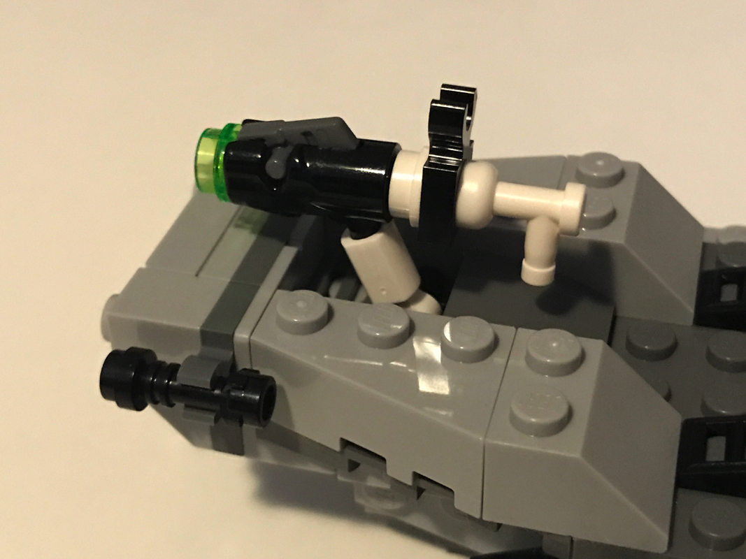 La construction du set est simple et rapide, mais reste néanmoins plutôt satisfaisante, contrairement au set 75125 qui, on a pu le voir, présentait de multiples défauts. On retrouve plein de détails intéressants, et la forme générale du vaisseau est vraiment bien recréée, malgré le fait que les proportions ont du être adaptées pour cette gamme Microfighters. Le détail le plus satisfaisant est sans doute le fusil à tenons. Il est fixé de telle manière qu’il peut être orienté à peu près comme on veut et permet donc de tirer dans quasiment toutes les directions. Il est également pourvu d’une poignée et d’un viseur. La proportion d’un fusil à tenons est ici vraiment adaptée à la taille du Snowspeeder.