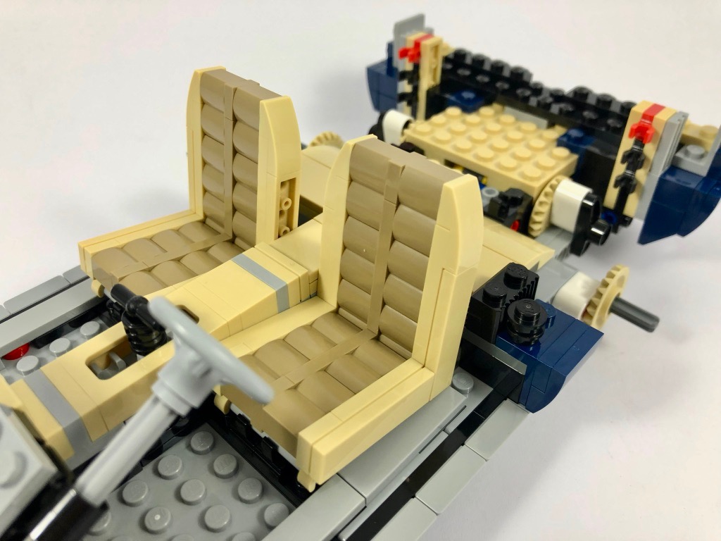 Mis à part les autocollants que j’évoquais plus haut, l’expérience de construction fait sans aucun doute partie de ce qui se fait de meilleur chez LEGO. Les phases se suivent, sans se ressembler, depuis la construction du châssis jusqu’à l’assemblage très minutieux des différents éléments situés sous le capot. Et ça regorge de techniques de constructions plus intéressantes les unes que les autres, que même les constructeurs aguerris apprécieront. On ne s’ennuie jamais, et on en redemande. Et comme souvent quand on prend un plaisir tel lors de la construction, la fin arrive bien trop vite !