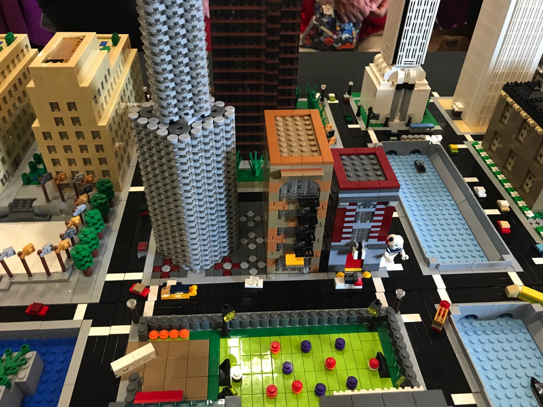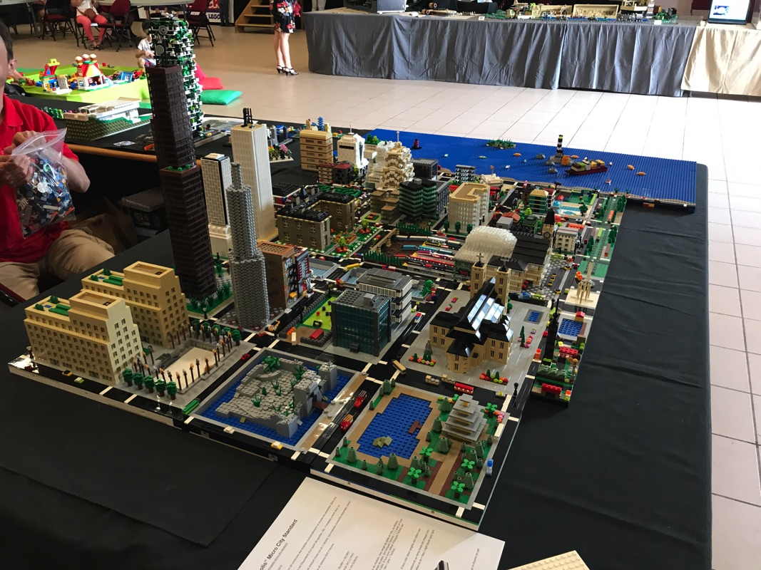 Il y a plusieurs stands présentant des choses que je n’avais jamais eu l’occasion de voir, et qui valaient vraiment le coup. Le premier d’entre eux nous présentait des bâtiments à l’échelle microscale (dans le style de la gamme Architecture), ainsi qu’une ville complète à cette échelle, dans laquelle on pouvait notamment retrouver le QG des Ghostbusters 😉
