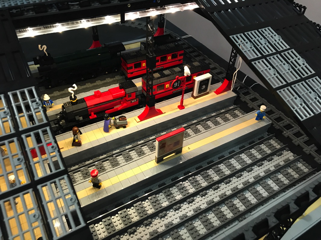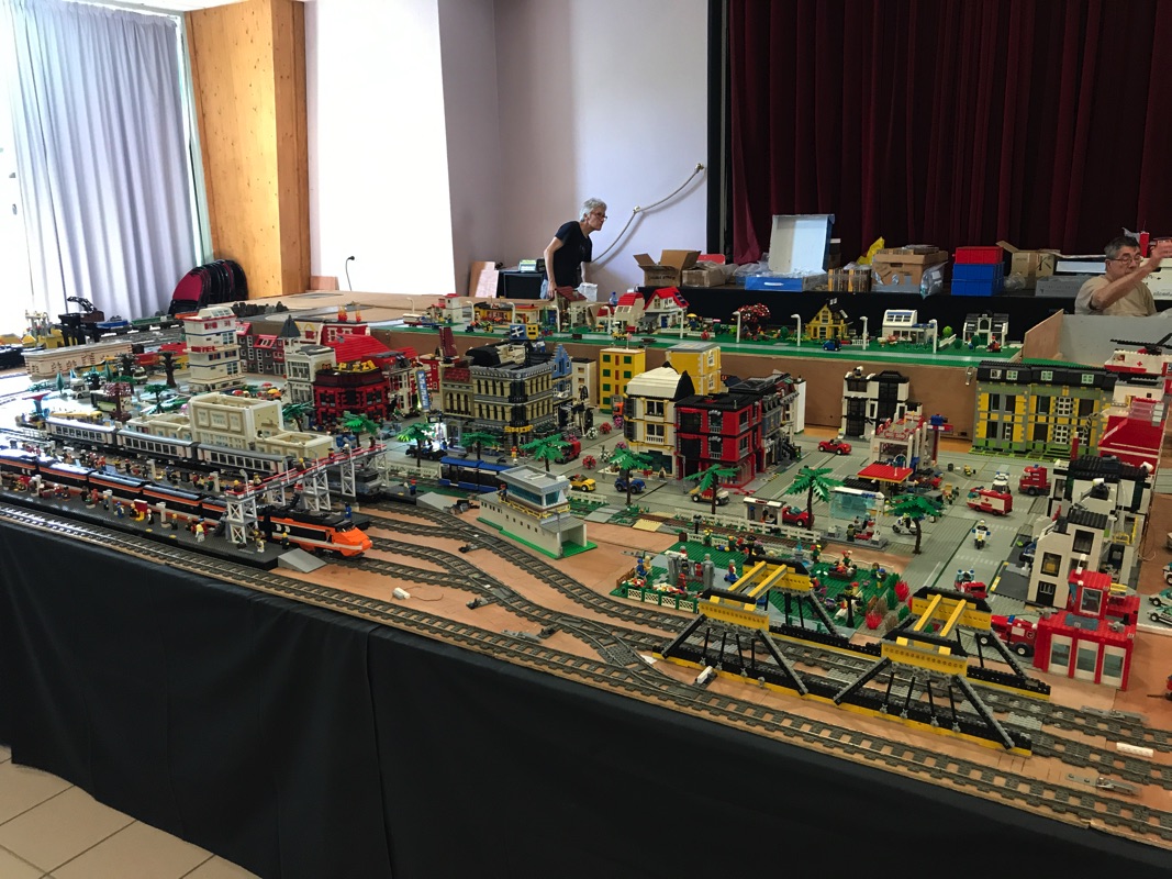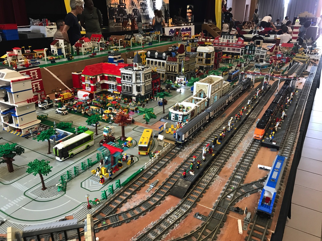 Une ville géante (je ne saurais dire ses dimensions mais elle est vraiment immense) occupe tout un coin de la salle. On y retrouve ses trains, mais également de nombreux bâtiments, les modulaires que nous connaissons prenant place aux côtés d’un grand nombre de créations originales.
