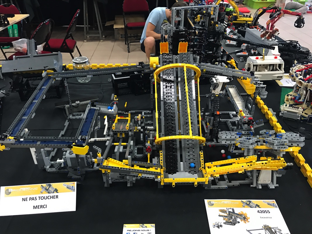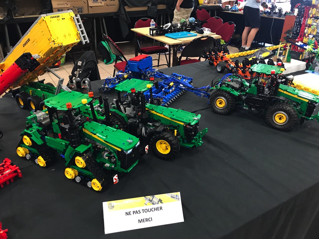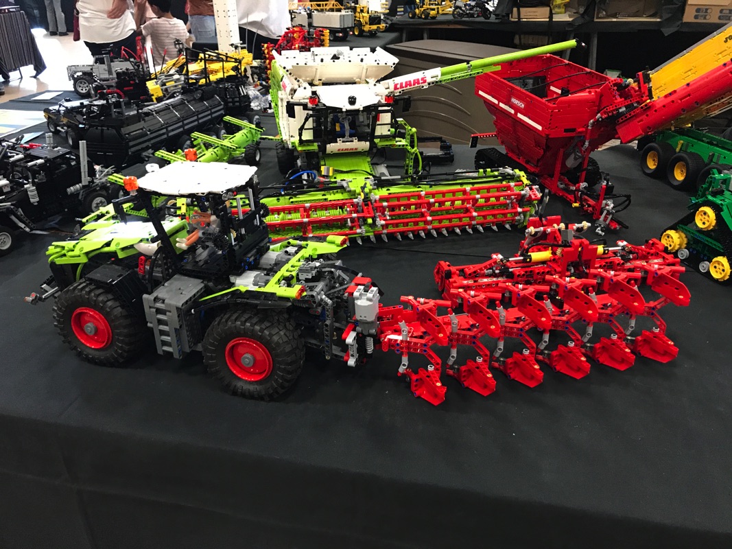 Un des autres stands que j’ai particulièrement apprécié est un stand regroupant des sets Technic, mais également des créations très intéressantes. On y retrouve par exemple le modèle alternatif type Great Ball Contraption réalisé avec les pièces du set 42055 – Bucket Wheel Excavator, et dont vous pourrez trouver la vidéo de présentation à cette adresse. On y voit également le set 42054 – Claas Xerion 5000 Trac VC avec des outils autres que la grue « de base » du modèle : charrues, bennes, etc…