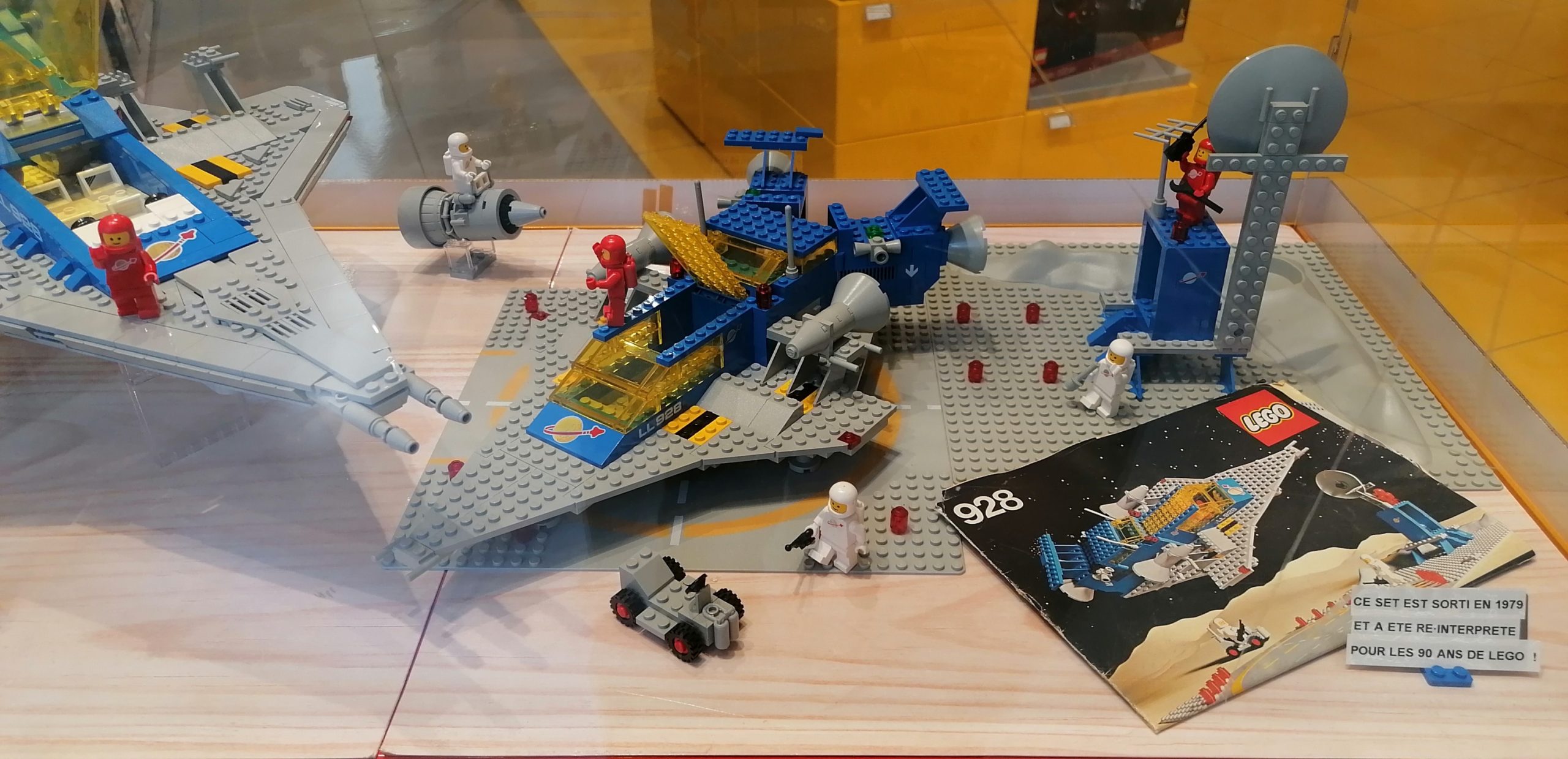 Suite à sa proposition dans les commentaires, Julien a eu la gentillesse de me faire parvenir quelques photos de ce joli set aux côtés de celui qui l’a inspiré, la référence 928 Galaxy Explorer sortie en 1979. Ils sont visibles au LEGO Certified Store de Blagnac, à côté de Toulouse. Merci à lui !