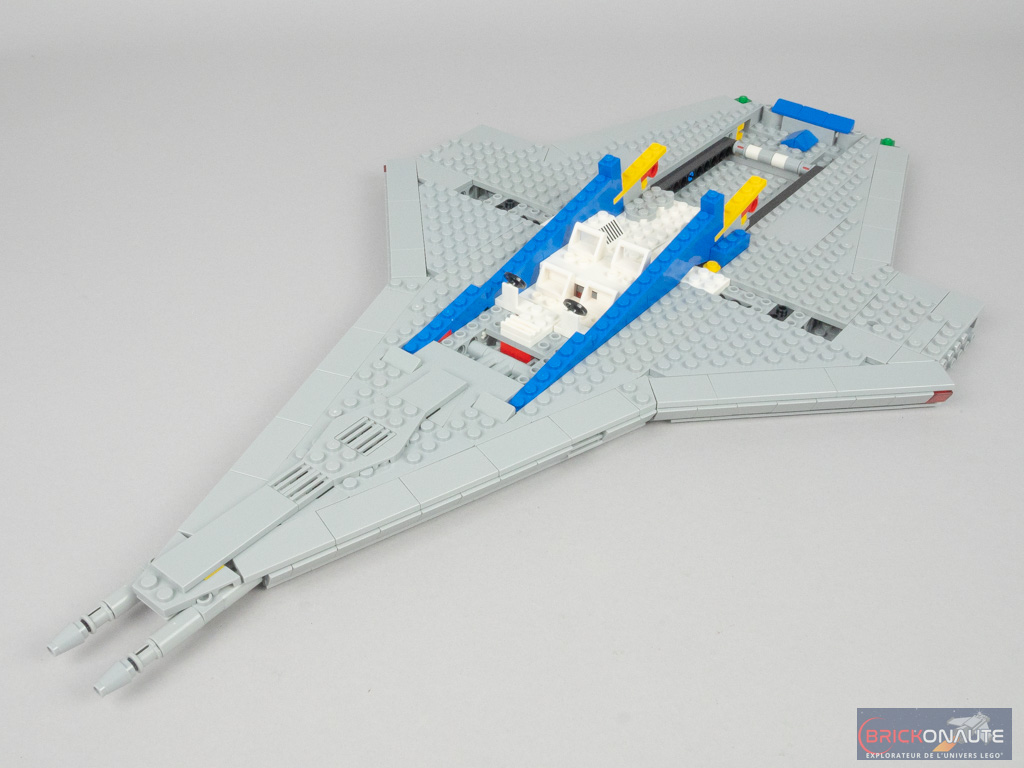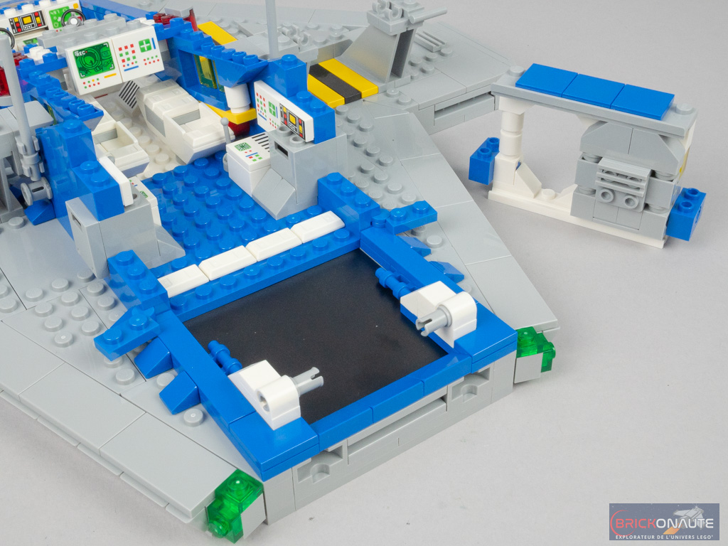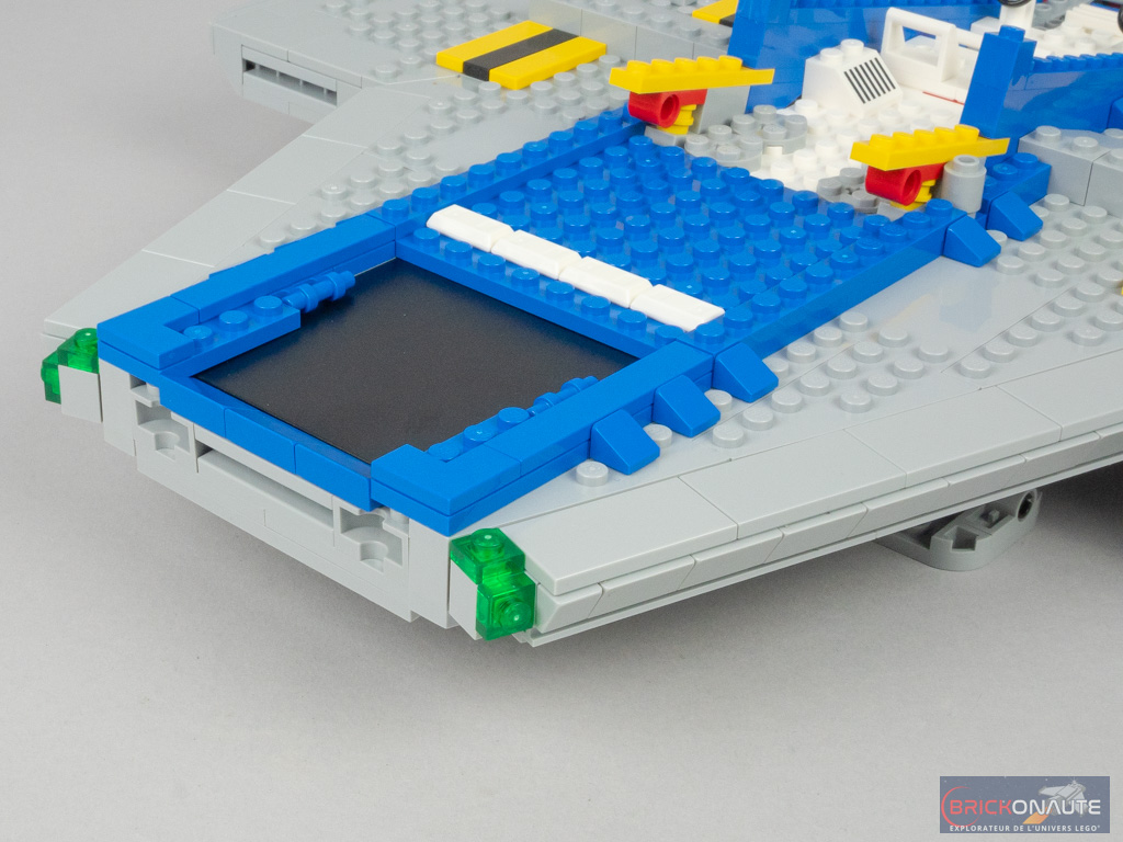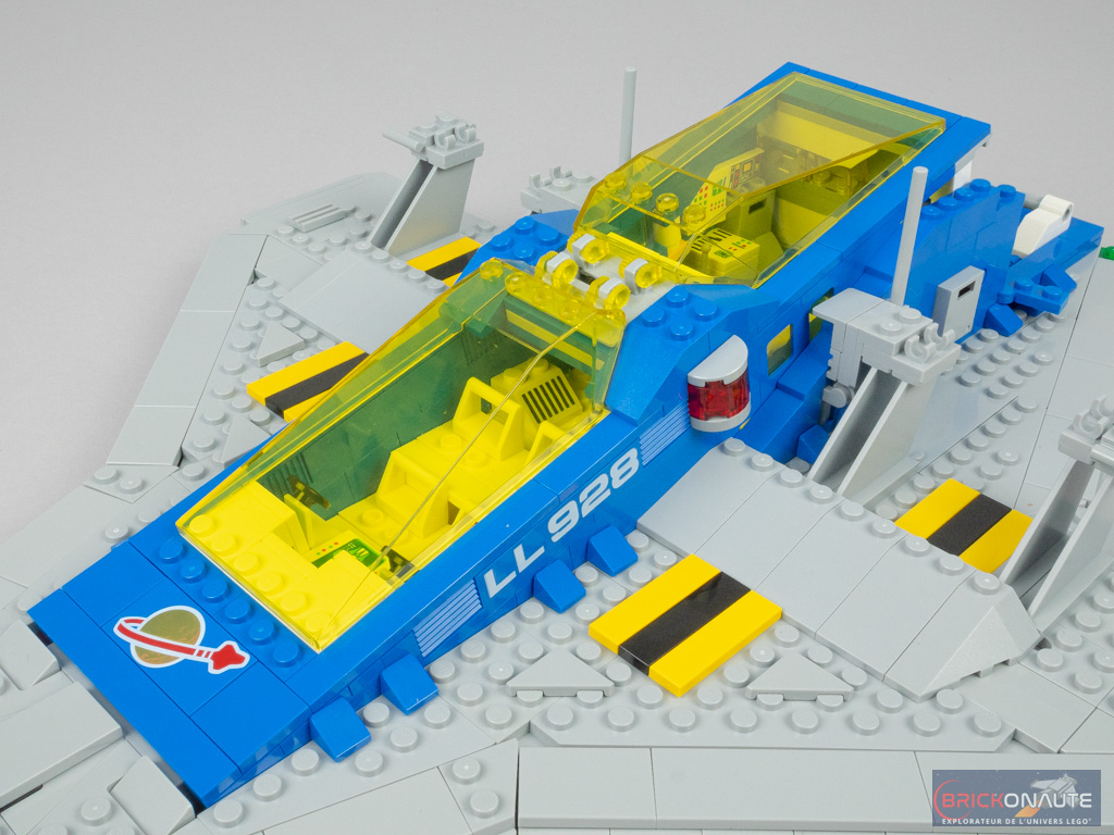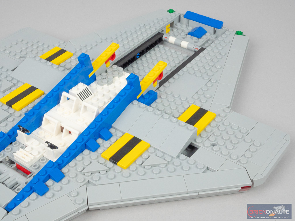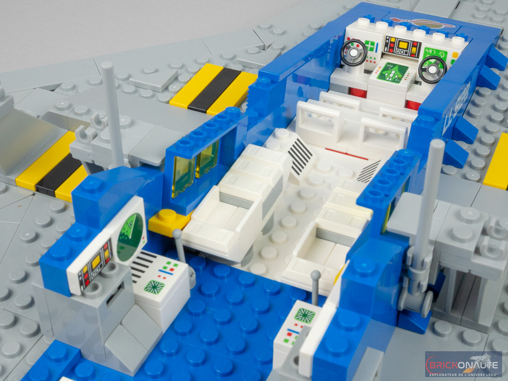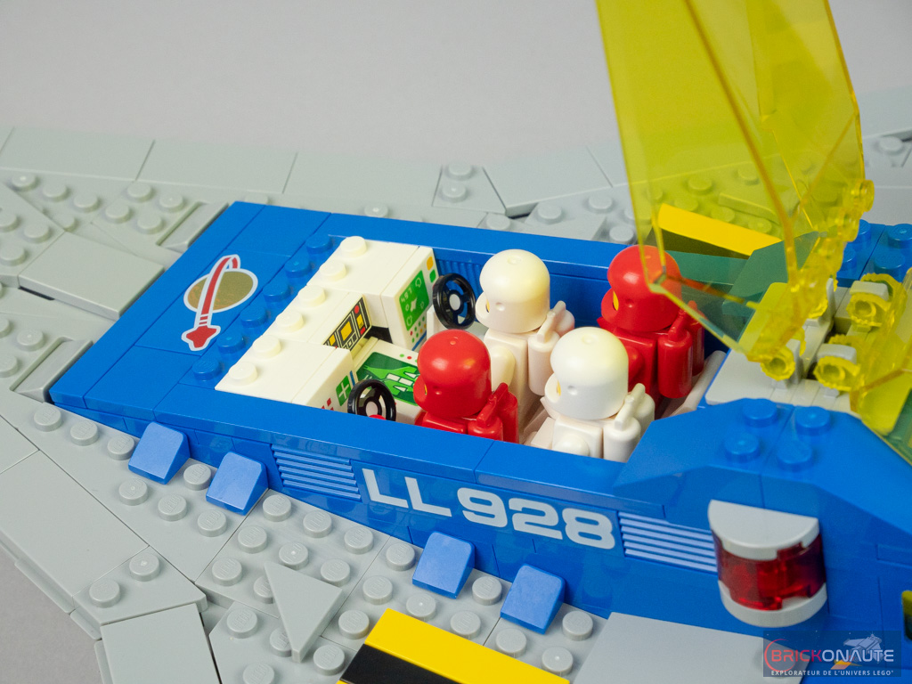 Car si le Galaxy Explorer a subi une cure de jouvence pour le mettre au goût du jour, l’hommage est bien là. Tout, ou presque, rappelle le vaisseau de 1979 : sa forme (même s’il a bien grandi – il est 1,5 fois plus grand que son ancêtre), ses couleurs (à l’exception du light gray qui n’existe plus, remplacé par le medium stone grey, très proche), ses éléments tampographiés (dont le fameux logo Classic Space) qui reprennent les designs de l’époque aux côtés d’éléments plus modernes, ses personnages ou ses éléments de jouabilité.