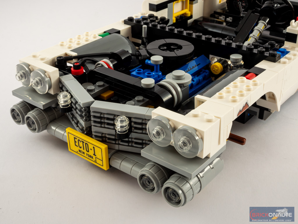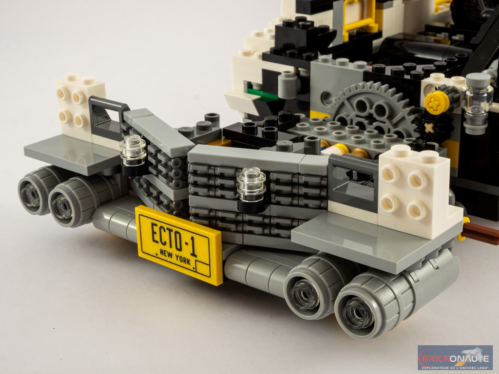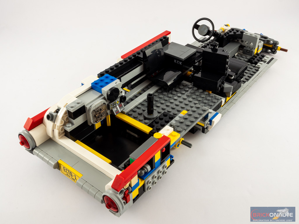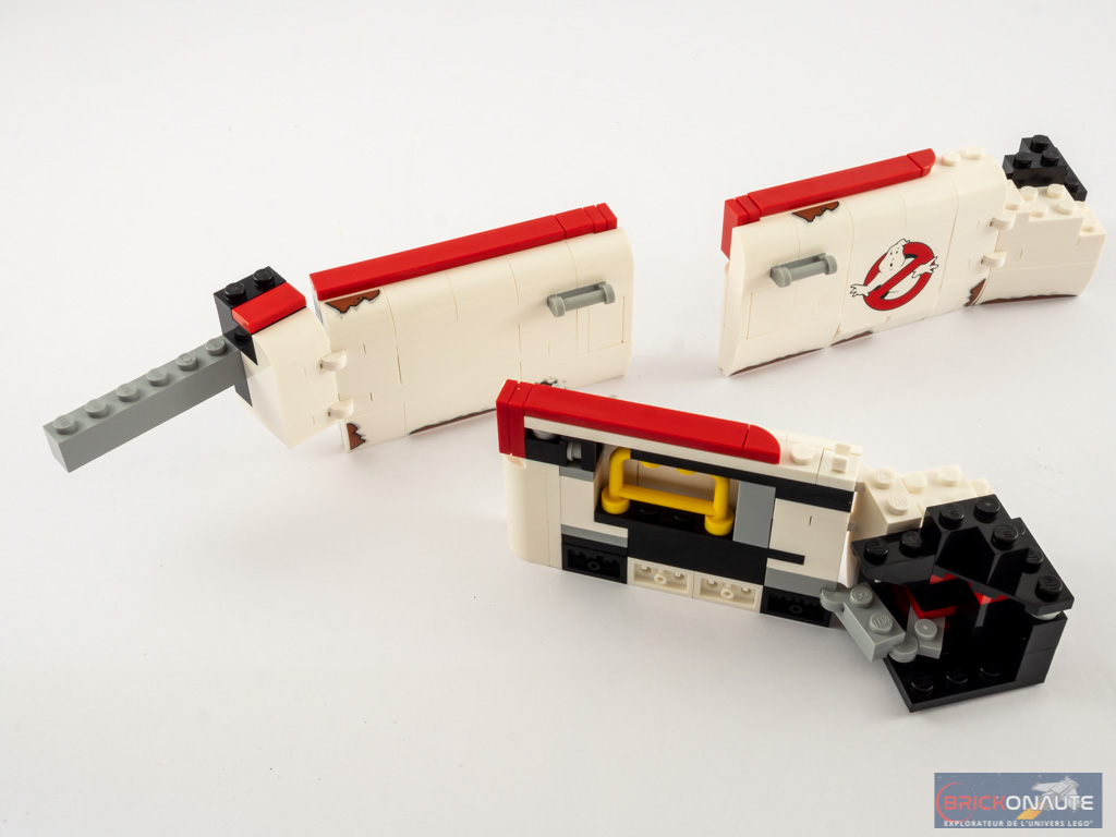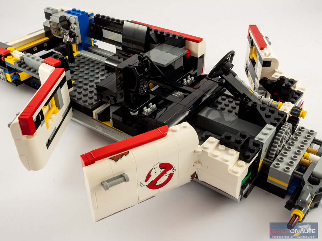 Commençons, pour l’évacuer tout de suite, par LE point qui m’a le plus déconcerté, pour ne pas dire déçu : l’absence de minifigs. Pour un set tel que celui-ci, clairement destiné aux collectionneurs nostalgiques, leur absence n’est que plus notoire. Alors oui le set s’inspire, si on en croit les photos présentes sur la boîte, du prochain film Ghostbusters: Afterlife (SOS Fantômes : l’Héritage) dont la sortie est attendue l’année prochaine – et pas des films des années 80. Mais l’engin est, à quelques détails près, identique à celui des premiers opus de la saga. J’aurais donc aimé retrouver Peter Venkman et ses acolytes dans ce set. Ou, à défaut, les chasseurs de fantômes du nouvel opus.