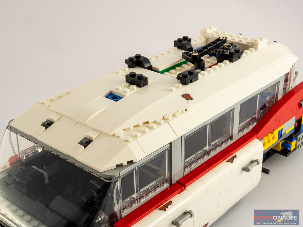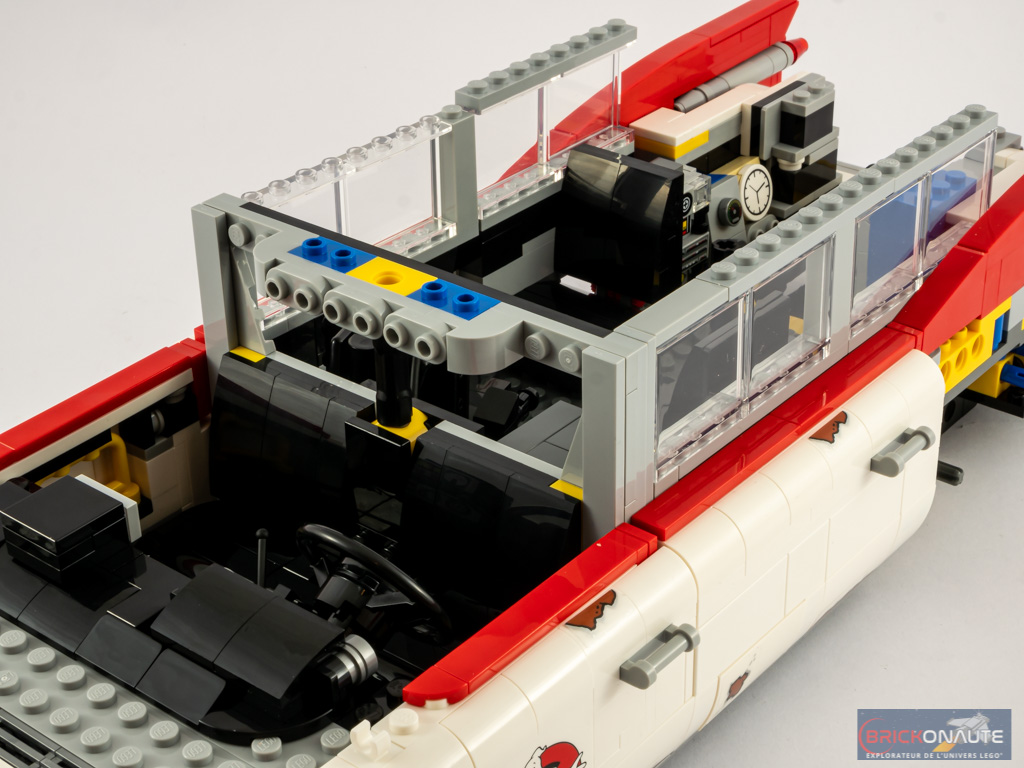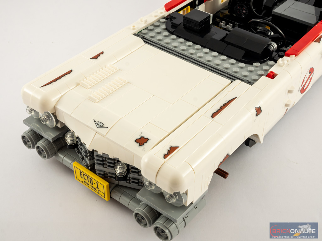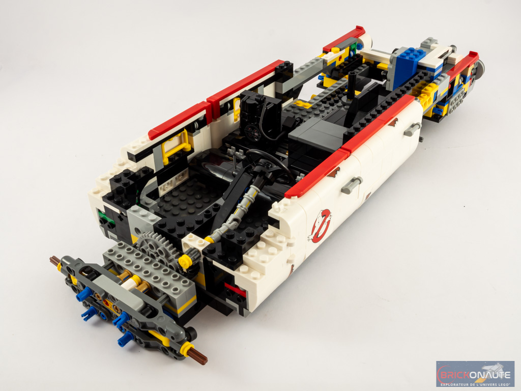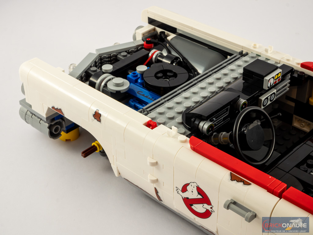Commençons, pour l’évacuer tout de suite, par LE point qui m’a le plus déconcerté, pour ne pas dire déçu : l’absence de minifigs. Pour un set tel que celui-ci, clairement destiné aux collectionneurs nostalgiques, leur absence n’est que plus notoire. Alors oui le set s’inspire, si on en croit les photos présentes sur la boîte, du prochain film Ghostbusters: Afterlife (SOS Fantômes : l’Héritage) dont la sortie est attendue l’année prochaine – et pas des films des années 80. Mais l’engin est, à quelques détails près, identique à celui des premiers opus de la saga. J’aurais donc aimé retrouver Peter Venkman et ses acolytes dans ce set. Ou, à défaut, les chasseurs de fantômes du nouvel opus.