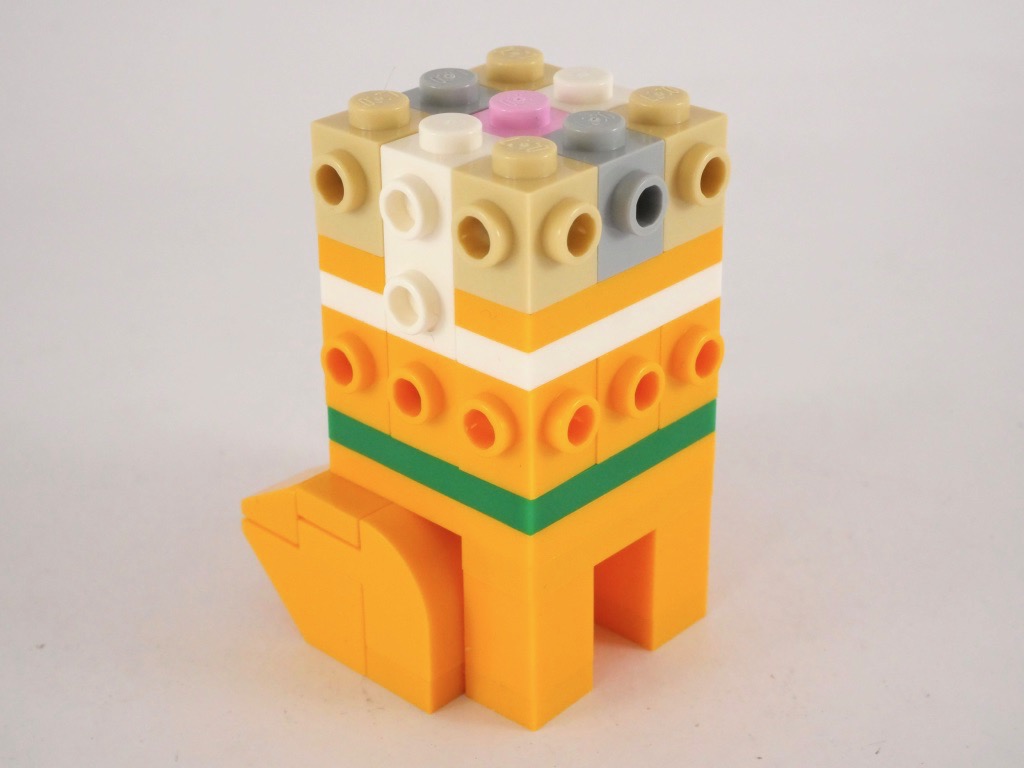 J’ai choisi de commencer par construire Pluto. S’agissant d’un animal, la construction diffère légèrement par rapport aux habitudes de cette gamme et est relativement intéressante, notamment dans la conception du bas du corps. La tête est en revanche classique des BrickHeadz « petit » format (3×3 tenons).