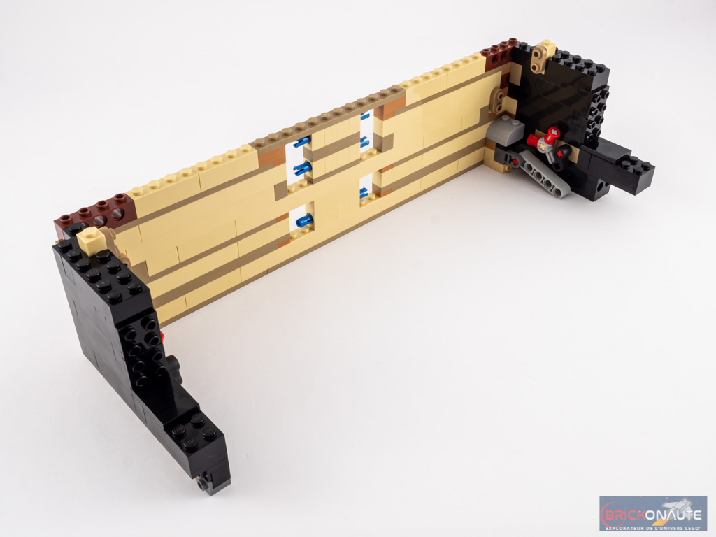 Il manque encore un peu de « bois » pour fermer notre piano. On commence par un grand sous-ensemble à double-courbure, puis nous assemblons la porte qui servira d’accès au hub caché à l’intérieur. Celle-ci est articulée sur deux pièces Technic en forme de L et permet donc un accès très facile à l’intérieur.