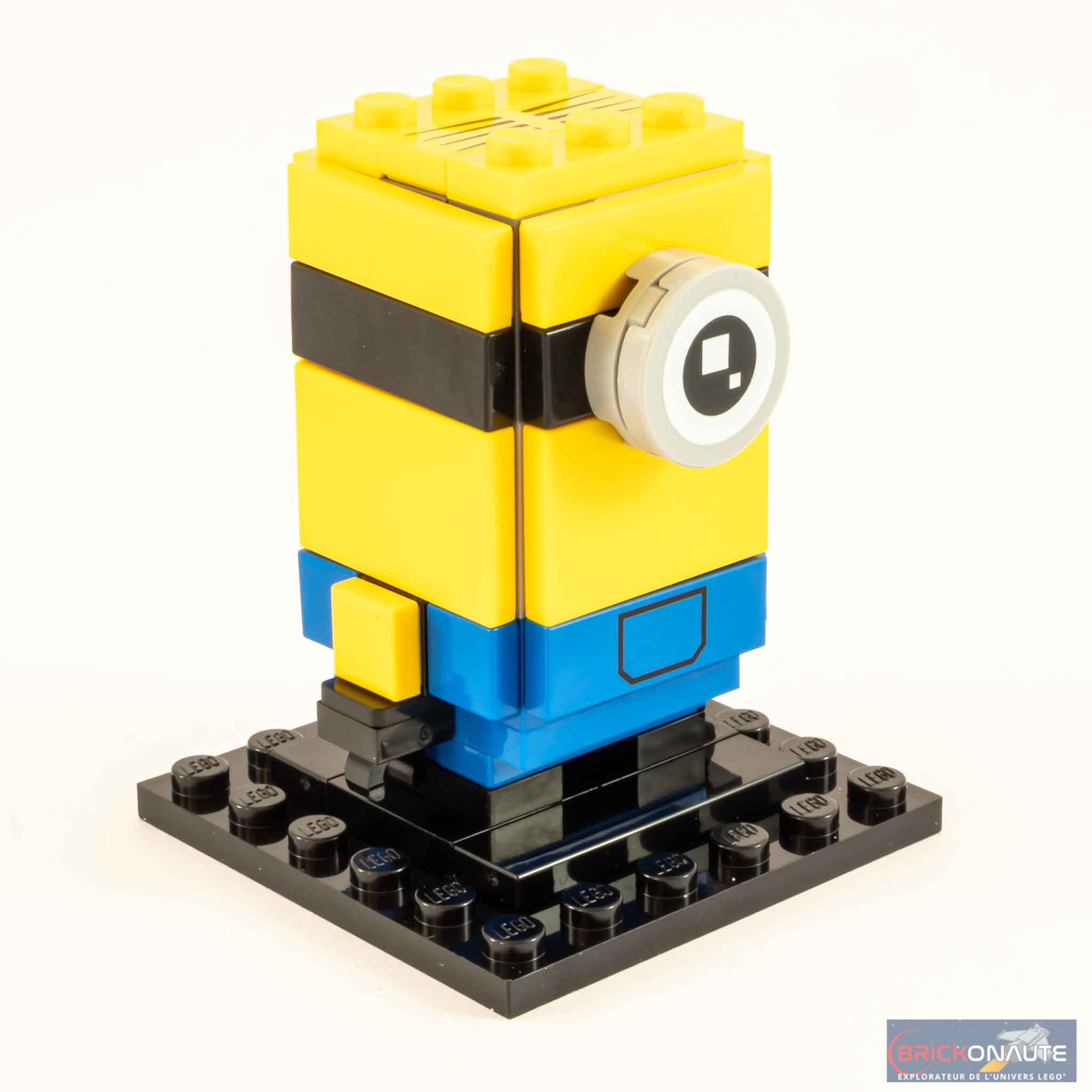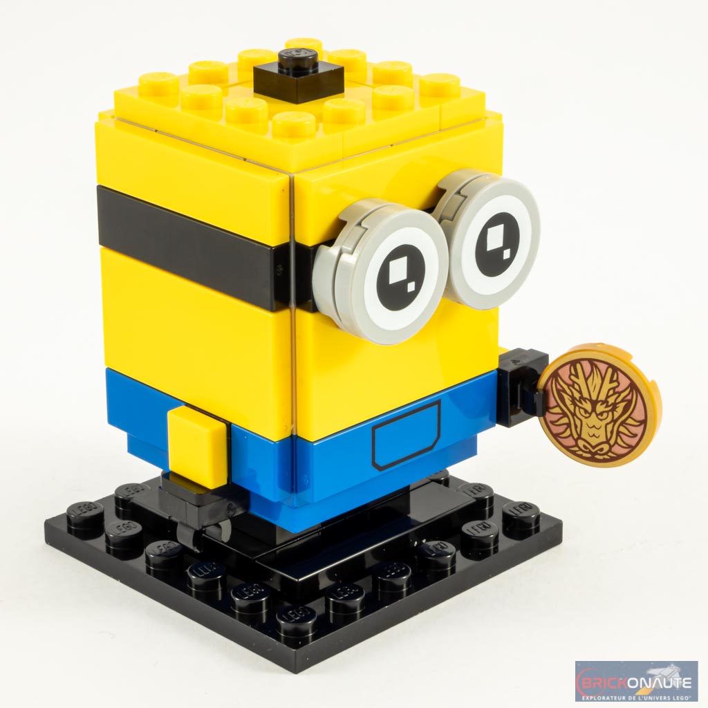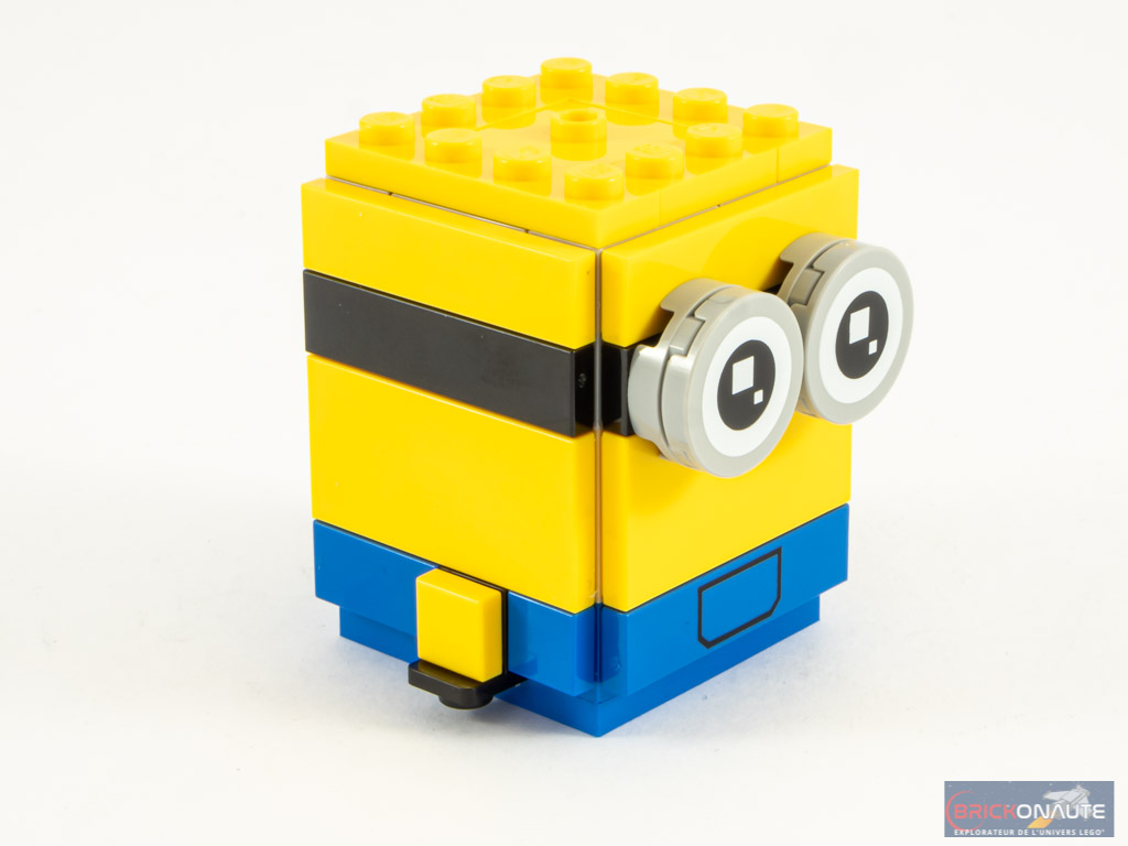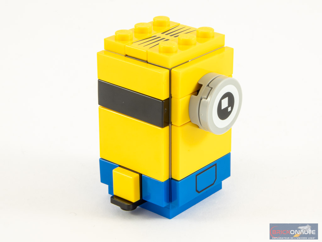 La structure interne de Stuart est semblable à celle utilisée pour les « petites » BrickHeadz, avec une dimension de 3×3 tenons. Là encore, la salopette est tampographiée, tout comme l’unique oeil et la tile jaune avec quelques cheveux sur le haut du crâne. Pour le reste, c’est très classique.