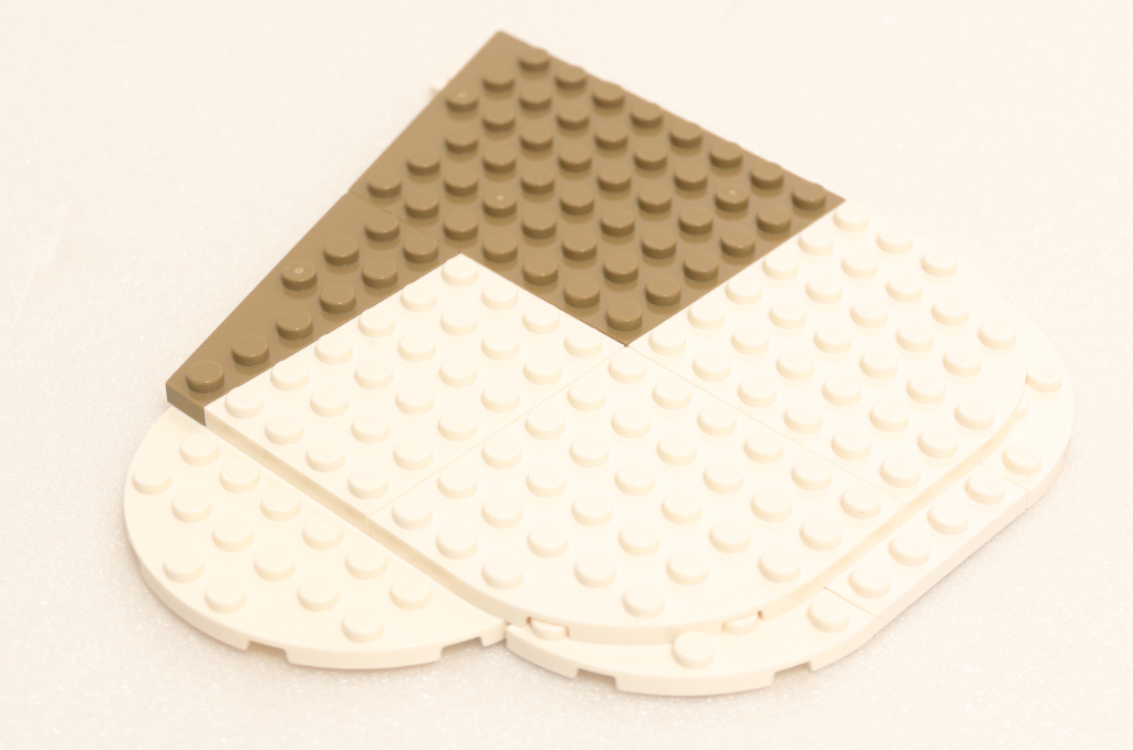 Nous voilà donc devant le principal attrait de ce set, la maison bleue qui reçoit donc la visite du Père Noël. Logiquement, le début se fait par les fondations à grand coups de plaques beiges pour l’intérieur et blanches pour l’extérieur. La construction débute par la partie centrale sur laquelle viendra se fixer les deux ailes latérales.