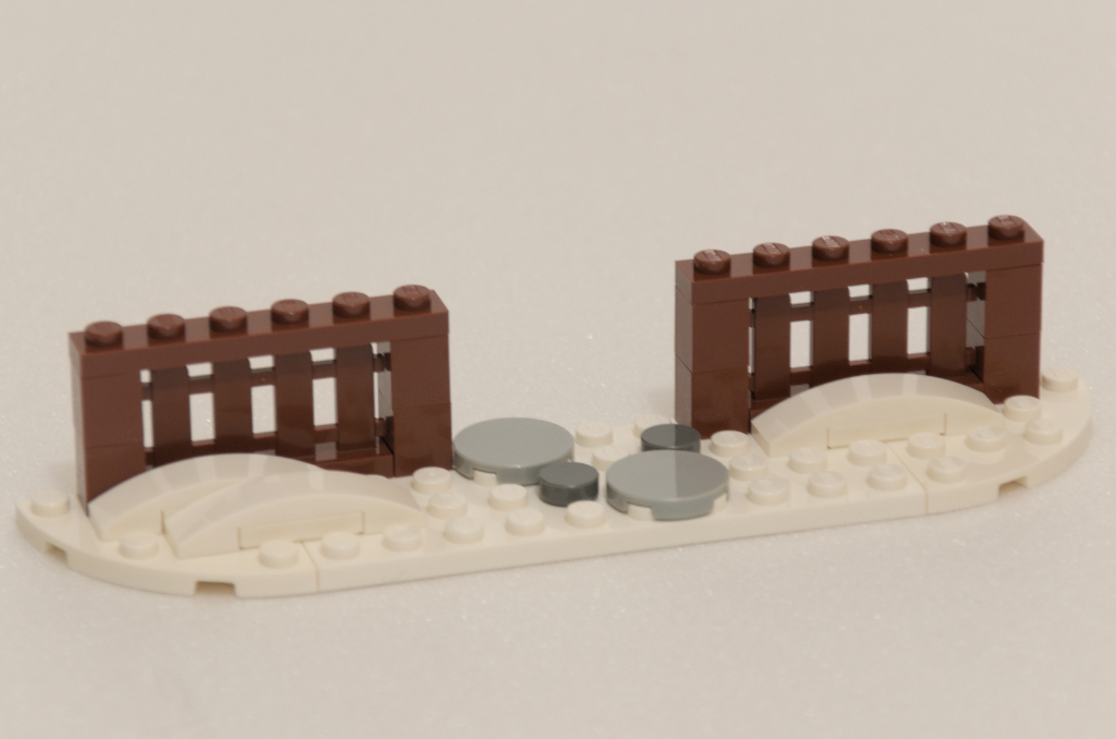 Le premier extérieur à assembler est la barrière d’entrée. Celle-ci repose sur un socle enneigé et est accompagnée de quelques accessoires, tels qu’une lampe et une boîte aux lettres. Ce premier montage est assez vite fait et ne présente aucune difficultés en particulier. Le résultat est plutôt convaincant.