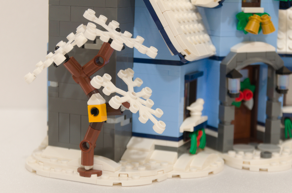 Ce qui constitue une des fonctionnalités de ce set est la brique lumineuse disposée au centre de ce sapin. C’est pour cela que le tronc du sapin est constitué de briques transparentes. L’allumage du sapin se fait en appuyant sur l’étoile à son sommet.