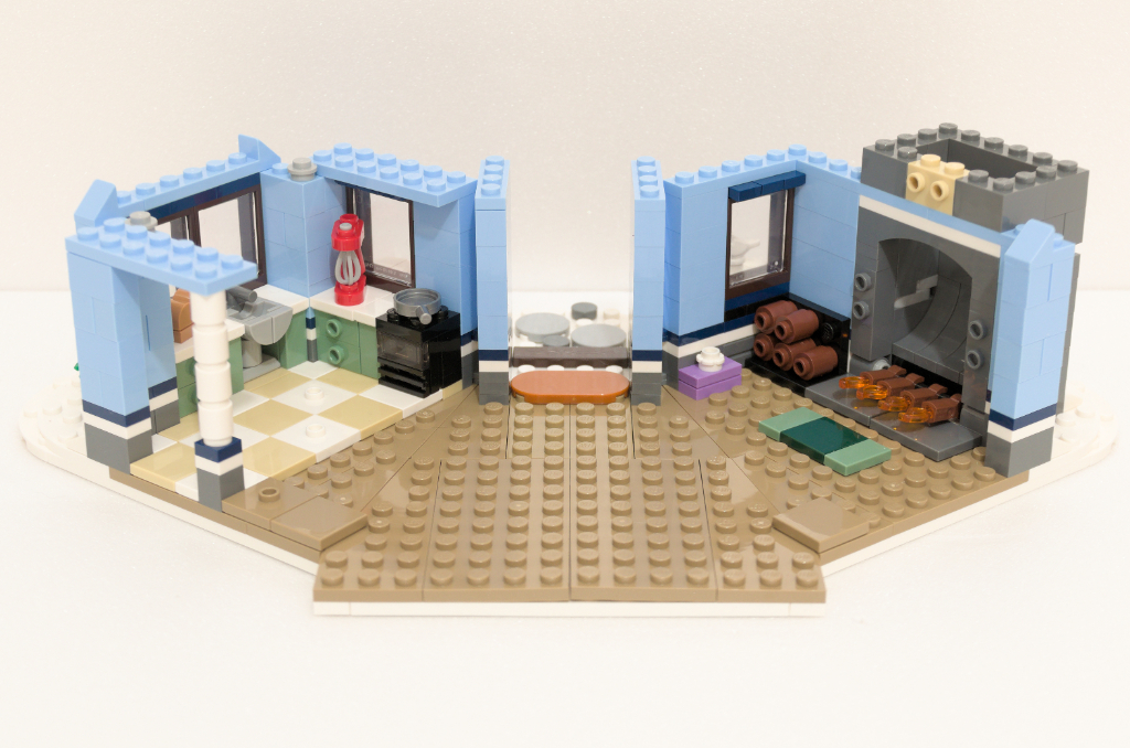 Le principe de la maison de poupée permet aussi un accès au jeu aisé mais certains pourront trouver ce grand vide gênant pour l’intégrer de façon réaliste à un diorama. Je ne trouve pas cela embêtant surtout qu’il faut se rappeler que c’est avant tout un jouet fait pour être manipulé plutôt qu’exposé.