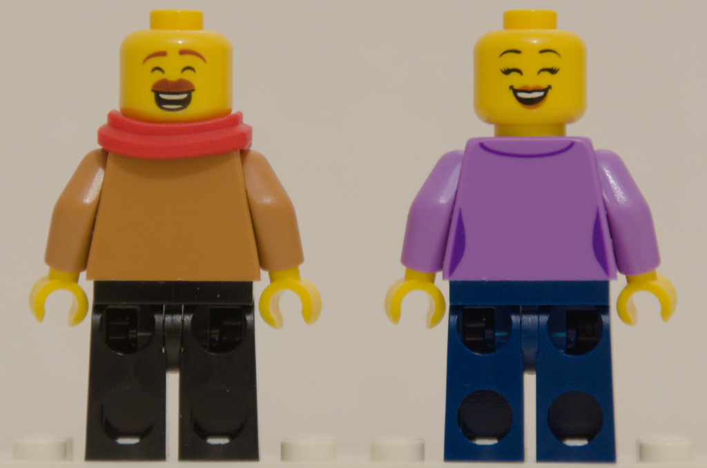 Et oui, on ne peut pas passer à côté des quatre minifigurines. Les parents sont réussis sans non plus être transcendants. Les torses sont bien réalisés mais les pantalons sont unis. Tous les deux ont le droit à un double visage, un côté souriant et un autre complètement euphorique (magie de noël oblige).