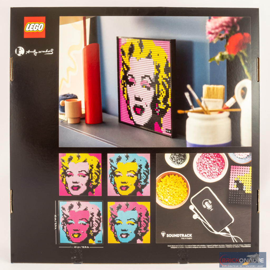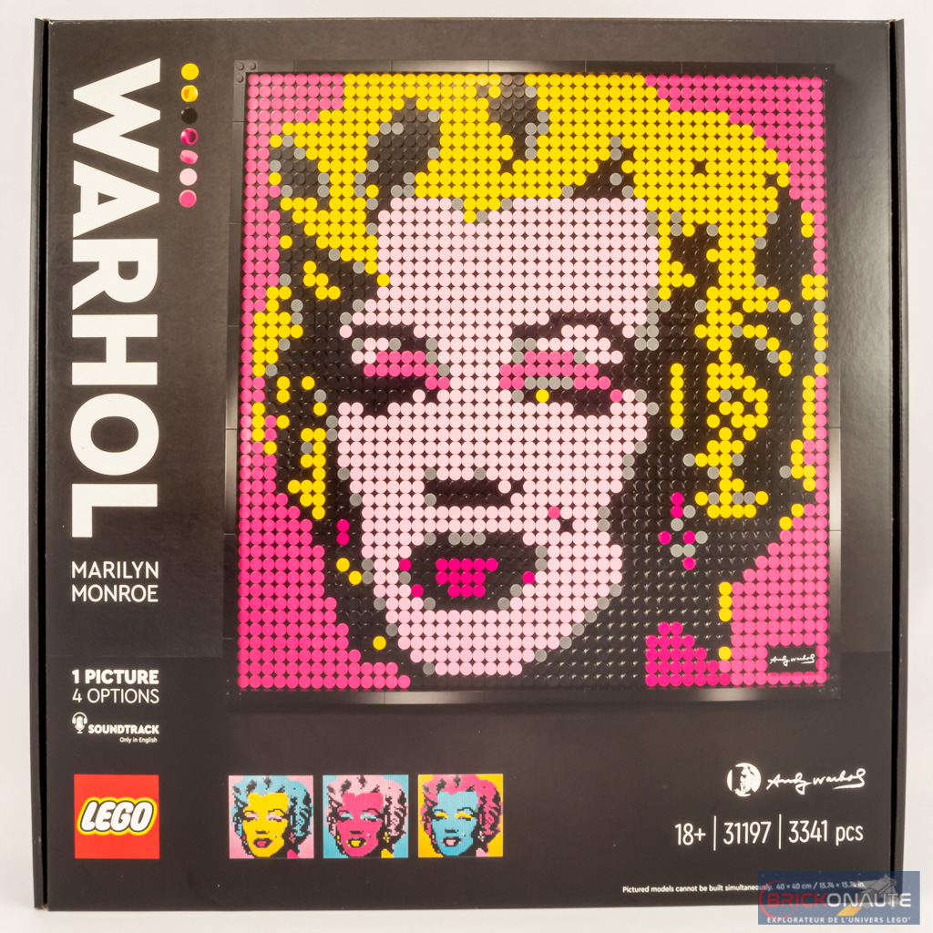 La signature, légèrement surélevée par rapport au reste du tableau, donne un côté galerie d’art, comme si Andy Warhol était à l’origine du montage. Cette série LEGO Art permet de toucher un public assez large en proposant des créations autour de célébrités mythiques.