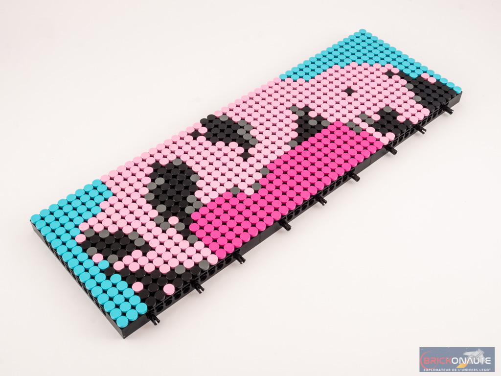 Par rapport aux autres LEGO, avec des assemblages verticaux et horizontaux (bâtiments etc.), bien sûr, cela reste un montage relativement simple et linéaire : suivre une ligne, avec un certain nombre de pions de certaines couleurs à mettre. Mais ce côté simple permet de passer un moment de détente, sans faire face à des assemblages complexes, et rapide à réaliser : nous voyons vite le résultat.
