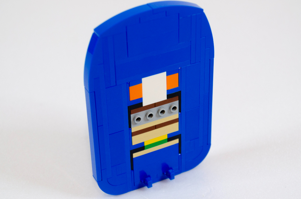 J’ai quand même quelques réserves sur l’esthétique, je trouve que l’arrière de la casquette est tout simplement raté mais je suppose qu’il a peut être fallu équilibrer le tout avec cet ajout par rapport à l’original. Et pour chipoter, je trouve le cou un peu trop cubique mais ce n’est pas non plus rédhibitoire. Enfin, l’arrière des jambes ne contient pas les trous permettant de fixer les minifigurines, ce détail aurait ajouté un peu de technique de construction permettant de varier l’expérience.