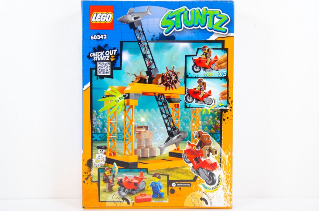 Aujourd’hui je vous invite à vivre une aventure avec des requins, un trésor, un squelette, un pilote et une mécano. Je vous propose de parcourir avec moi le set LEGO City 60342 The Shark Attack Stunt Challenge ou Le défi de cascade : l’attaque des requins en français.