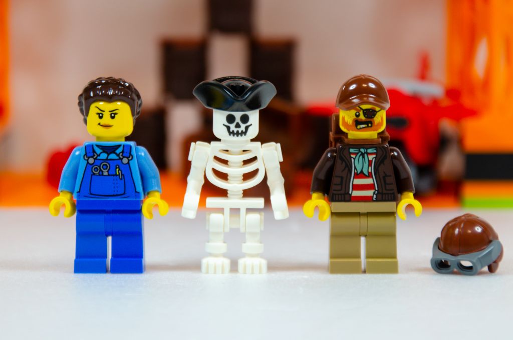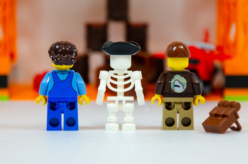 Alors oui, pour faire des cascades, il nous faut bien un cascadeur et pour réparer ses bêtises une mécano. Même si vous le voyez dans les photos ci-dessous, le squelette n’est pas à proprement parler une minifig mais il peut apparaître comme un personnage de votre histoire ou un simple élément de décor.
