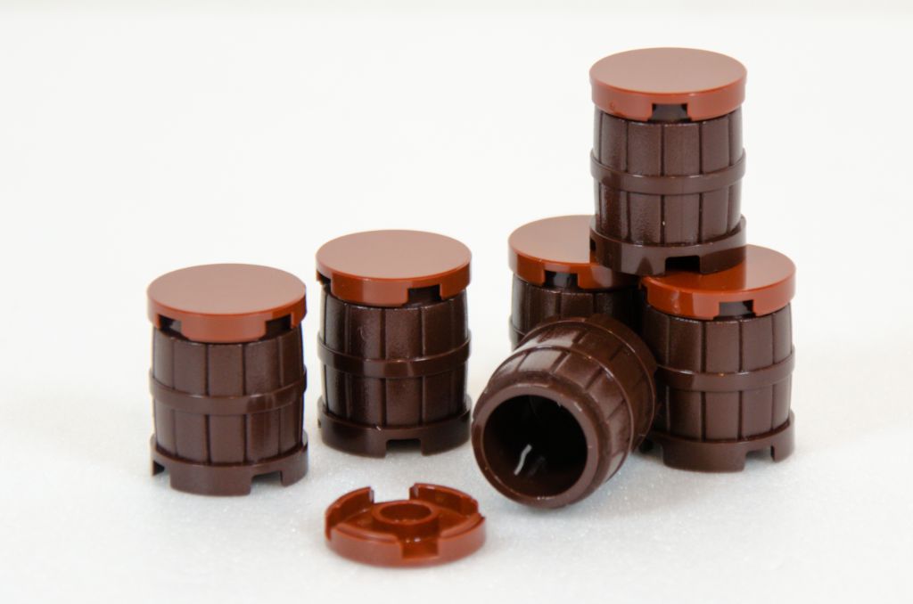 Le premier sachet est particulièrement léger et pour cause, on ne construira que les accessoires autours de la structure avec celui-ci. Les deux minifigs sont obtenues de suite ainsi que le squelette et je me dis qu’au moins les minifigs auraient pu être séparées pour garder une sorte de suspens. Je vais avoir du mal à vous faire saliver mais il n’y a rien de passionnant ici. Nous commençons par les six tonneaux, puis les deux requins et le trésor. Le tout sur trois étapes de construction.