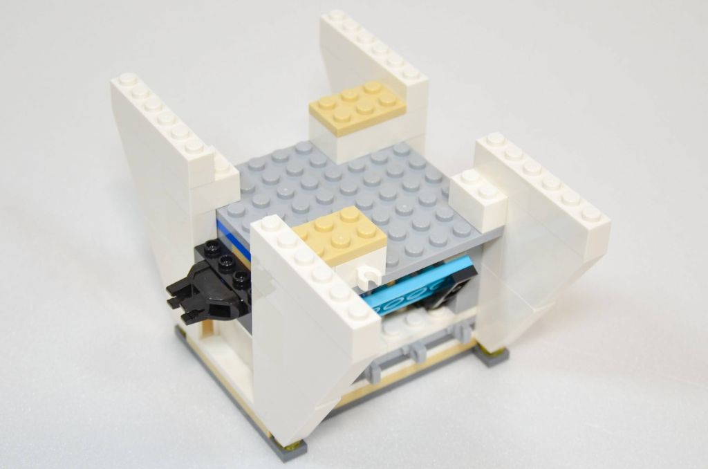 La base est assez compacte au final et les espaces sont très réduits, clairement je n’aimerai pas y être enfermé ^^. Une fois construite, elle a fière allure et est assez bien proportionnée ce qui lui donne un volume global plutôt sympa.