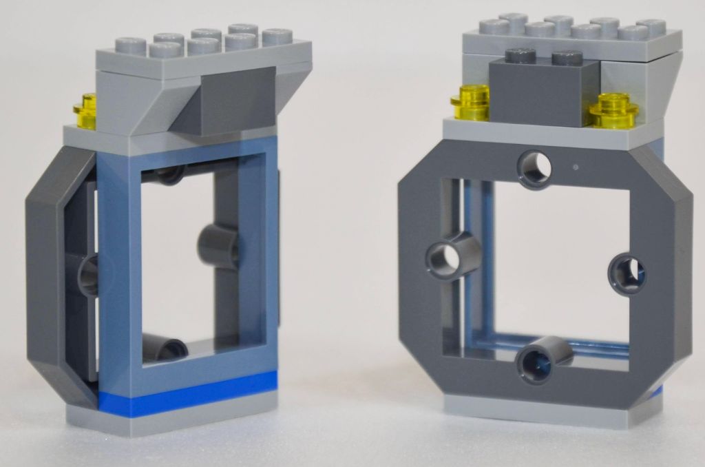 Il n’y a bien que nos legonautes d’intérieur qui sont un peu tristounes tout en bleu et leurs jambes monochromes. Trois personnages possèdent des têtes à double expressions et ceux portant un casque ont aussi leurs cheveux de fournis. Les deux legonautes en opérations ont aussi de beaux « backpack » en brick build qui arborent fièrement les logos Classic Space.