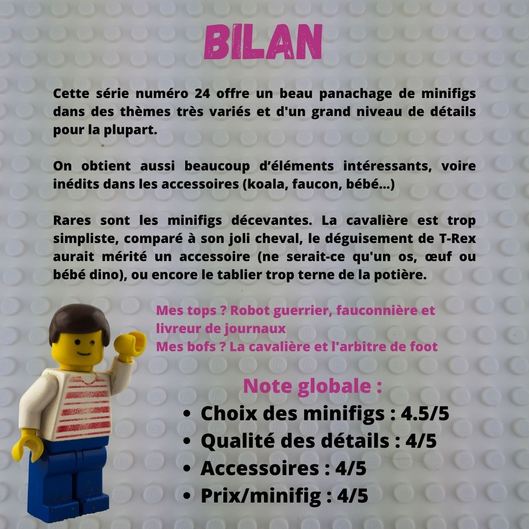 Sous un format différent de mes dernières guest-reviews, je vous propose une présentation tout en images de la série 24 des minifigurines à collectionner (71037 LEGO Minifigures Series 24), sortie début 2023 au prix unitaire de 3,99€.