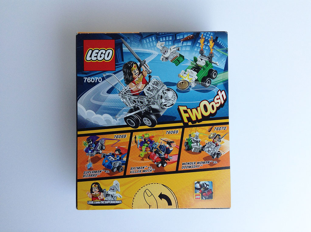 LEGO détient deux licences de super-héros : Marvel et DC Comics. Wonder Woman contre Doomsday appartient à la seconde. Quelle que soit la licence, la recette des Mighty Micros reste la même : pour un prix doux (9,99 €), deux minifigs sont fournies avec leurs véhicules et quelques accessoires. L’ensemble est bien évidemment destiné à reproduire, à une échelle micro, la lutte entre le Bien et le Mal. Ce set 76070, sorti en 2017, est toujours en vente dans quelques enseignes et ne manque pas d’intérêt. C’est pourquoi il trouve sa place dans ces colonnes, sous la forme d’une « guest review », la première rédigée par un auteur-contributeur.