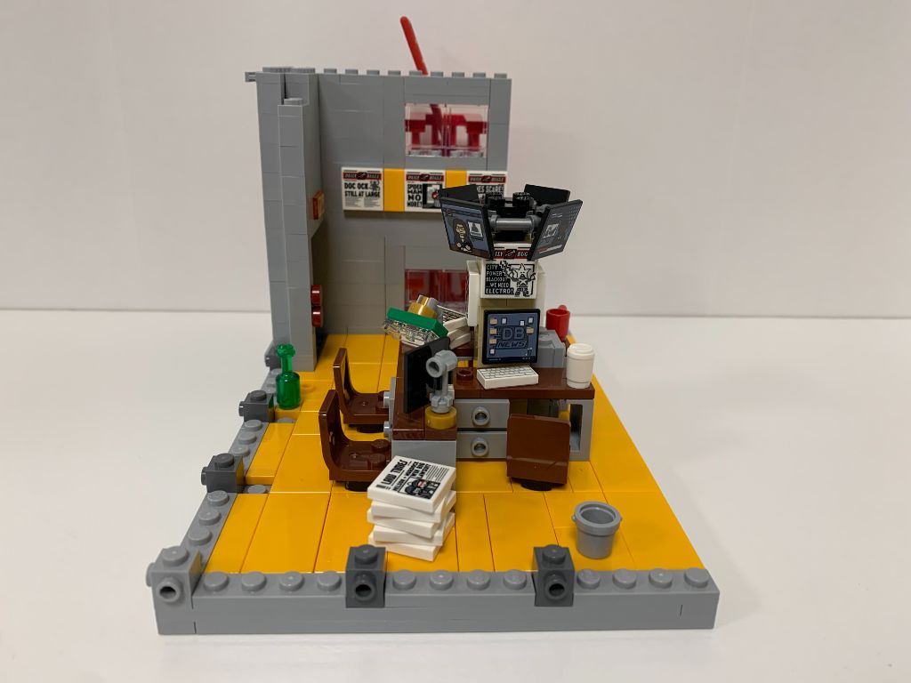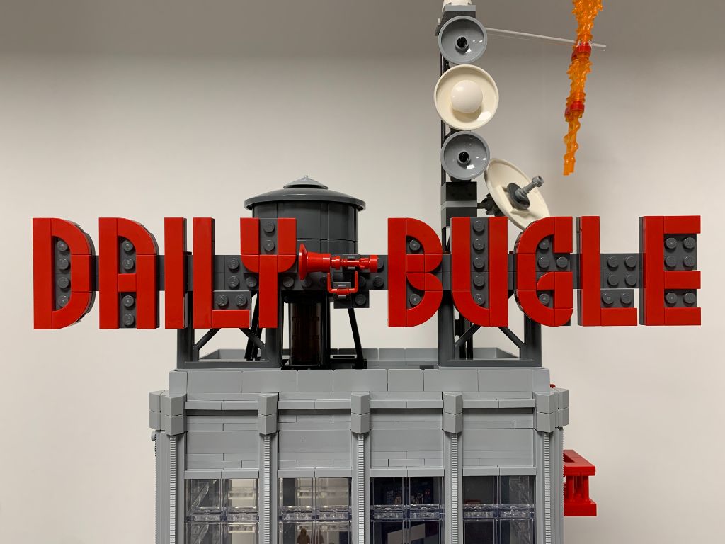 On monte enfin l’imposante et magnifique enseigne DAILY BUGLE en brickbuilt.