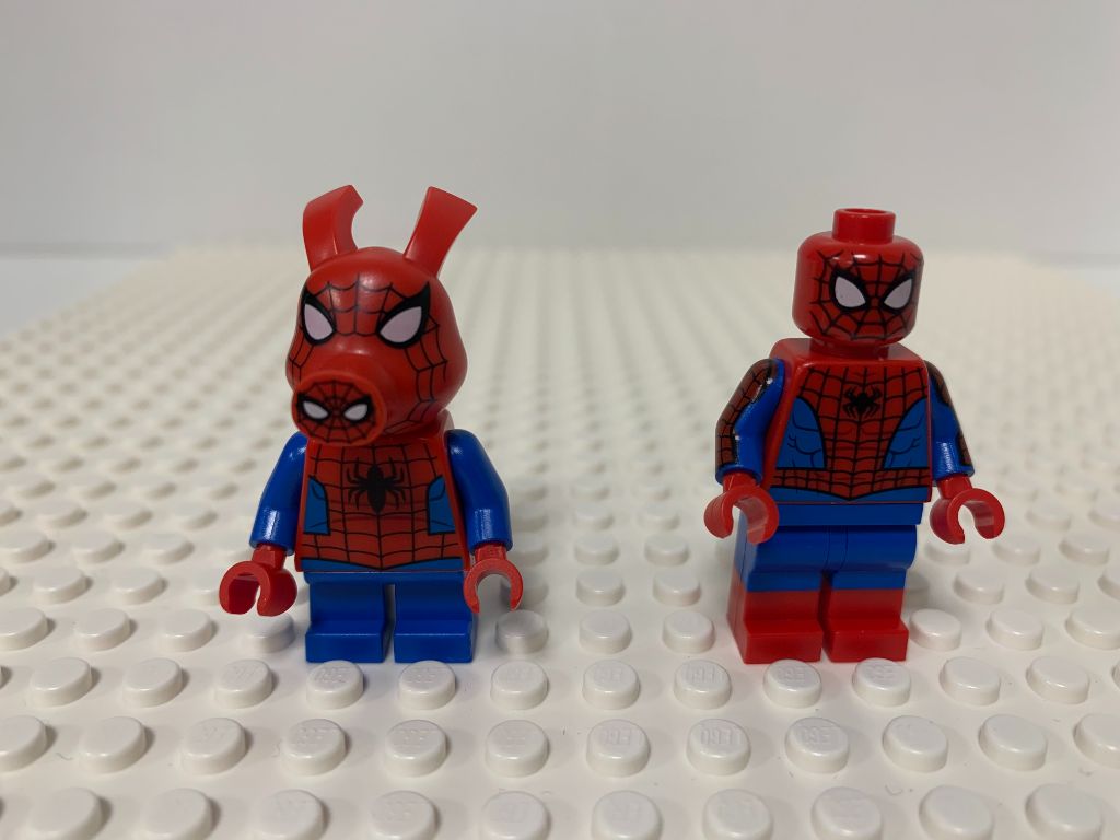 Il y a d’abord des versions alternatives d’univers parallèles, Miles Morales, Gwen Stacy en Spider-Gwen et surtout l’original Spider-Ham issu d’un univers parodique. Et je termine avec le héros du set, Spider-Man qui regroupe un paquet des meilleurs techniques de création LEGO : des jambes en double moulure, un torse, un tête et mêmes des bras finement tampographiés. Belle version que celle-ci.