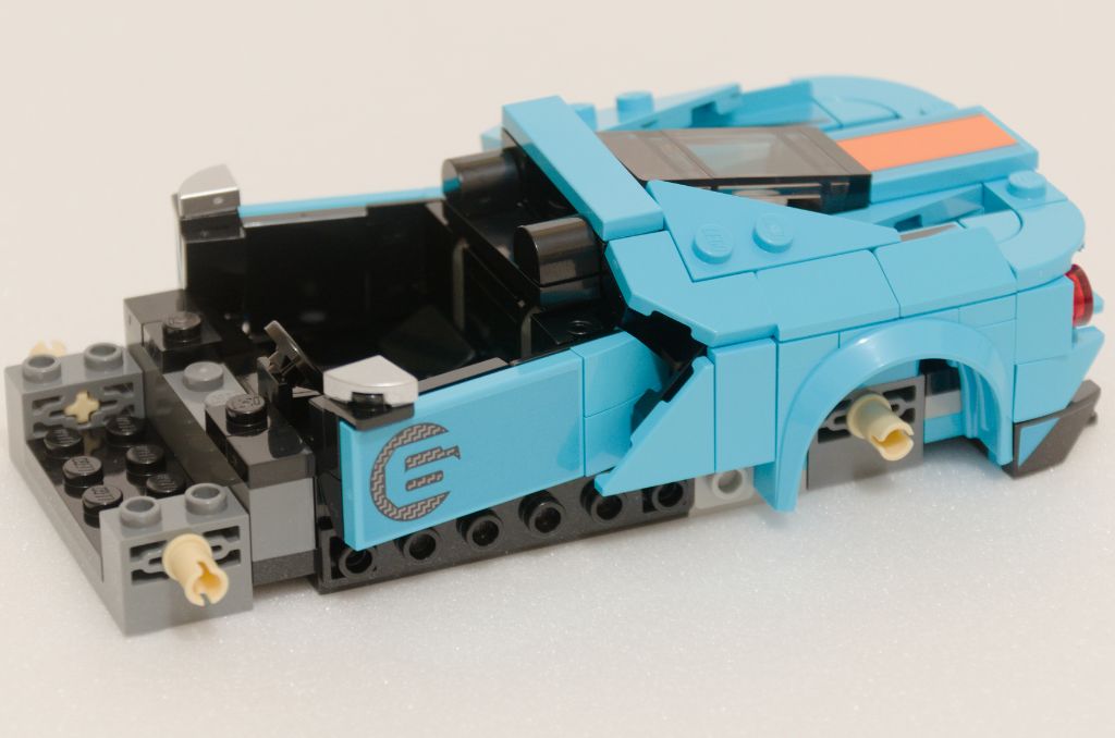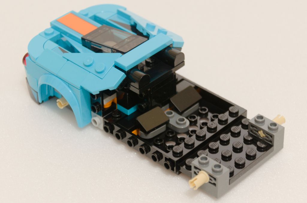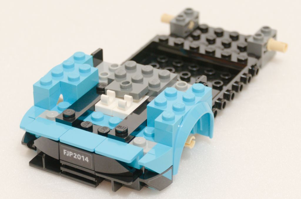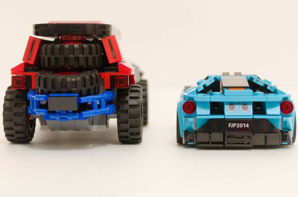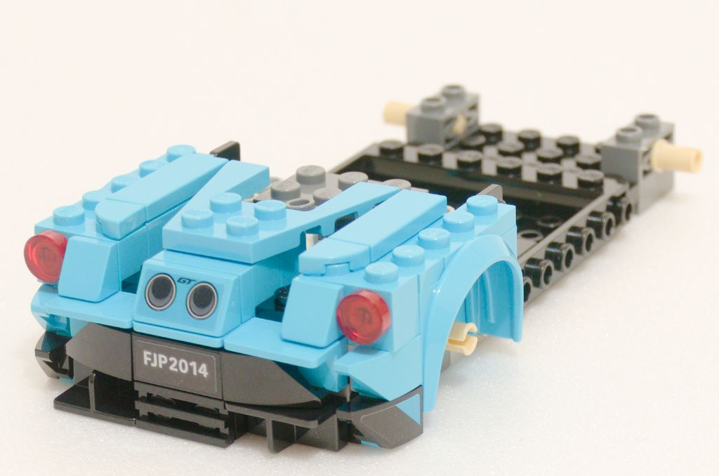 Quant à la GT, il est vrai que les magnifiques courbes prennent un coup mais là encore, nous sommes aux limites de l’exercice. Elle est clairement sauvée par cette livrée qui est un classique des courses. Son défaut est surtout le choix de transparence grise qui ne permet pas de voir la minifig aussi bien que peut le laisser supposer le visuel officiel.