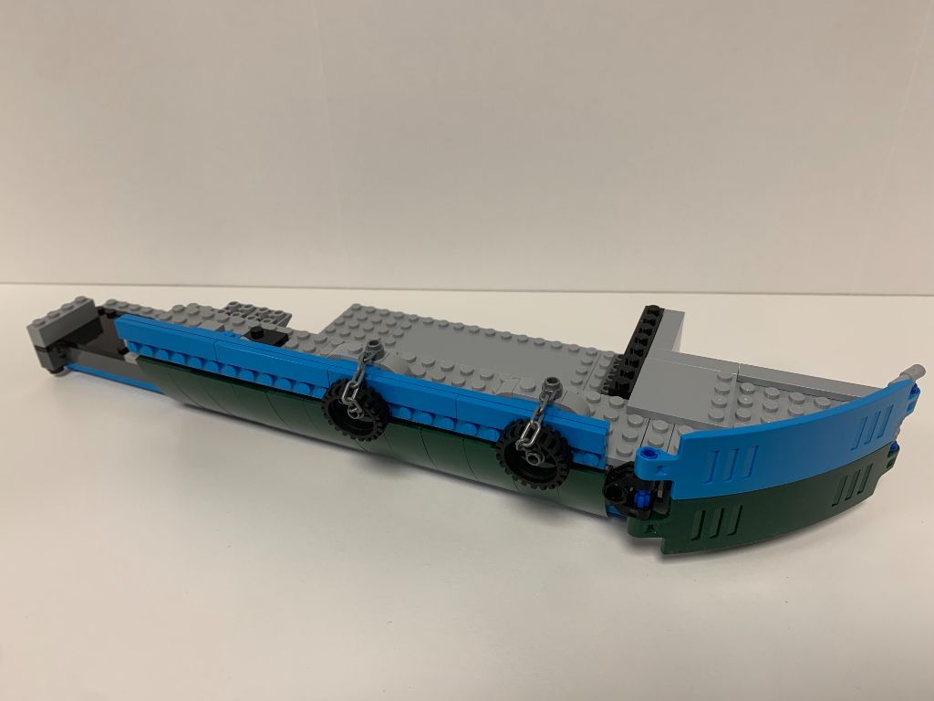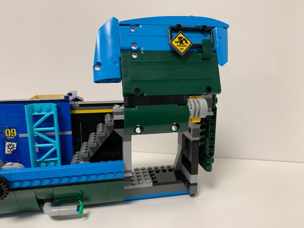 On commence par un gros sous-ensemble avec quelques belles métapièces, qui vient fermer l’arrière du bateau sur une charnière. Ça épouse parfaitement la coque et permet également un large accès à la soute.