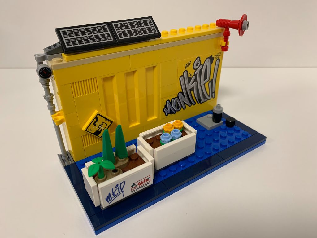 On accessoirise encore avec quelques tuyauteries, des panneaux solaires, une sirène et deux bacs de fleurs.