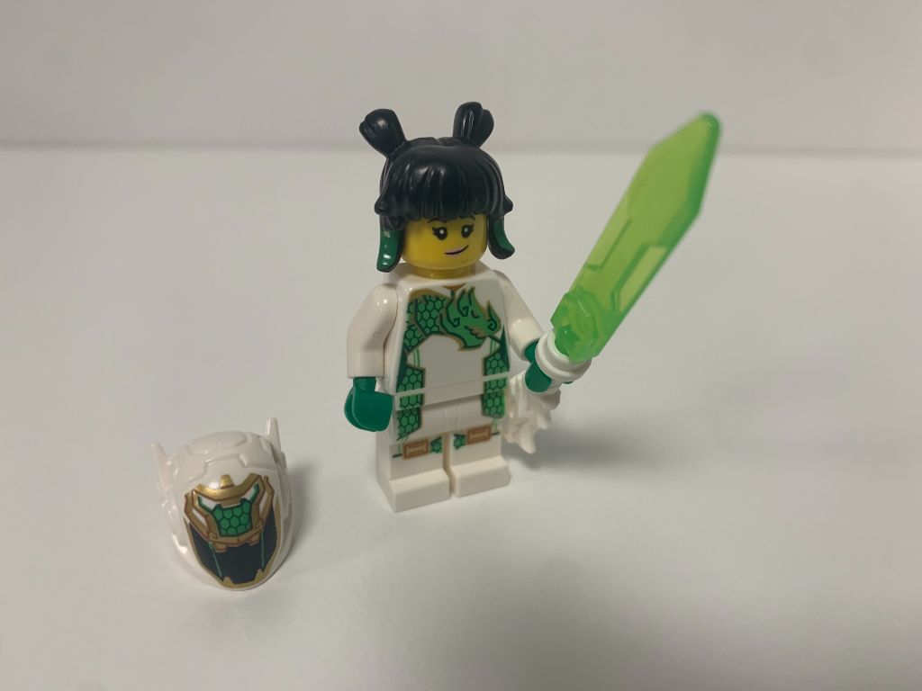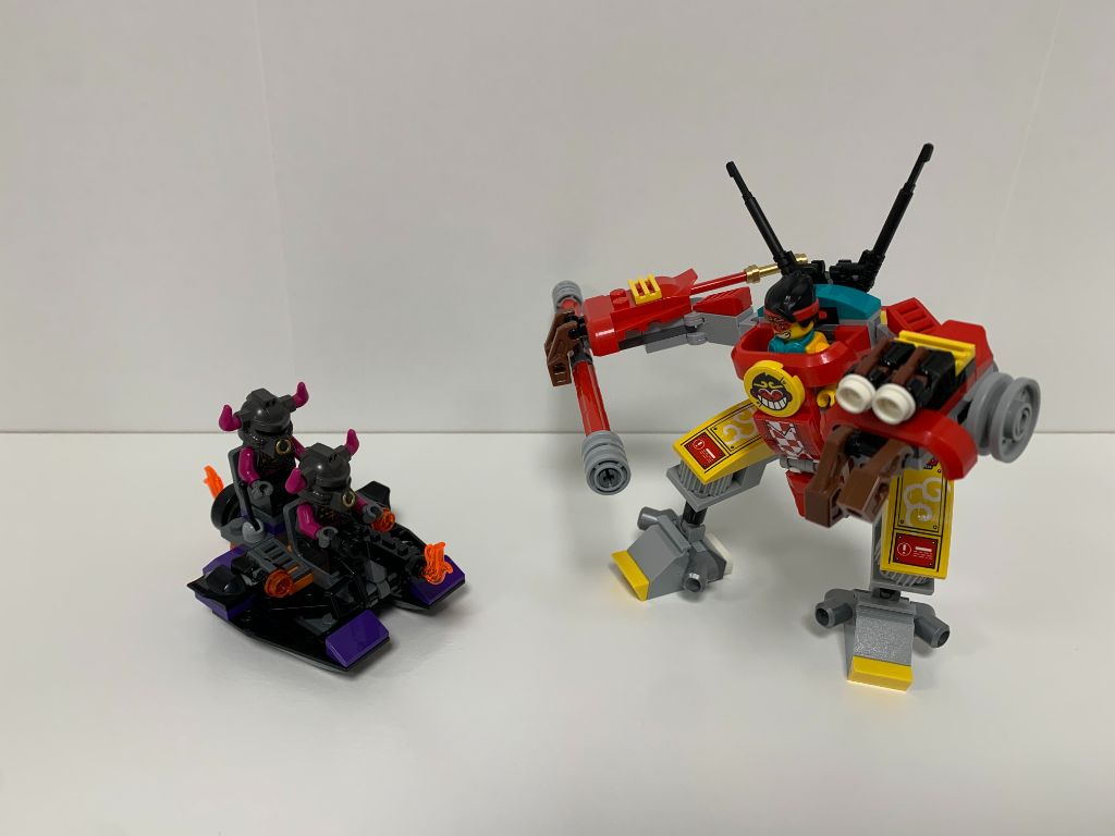 On obtient la 1ère des minifigs, le héros de la gamme : Monkie Kid. Magnifiques tampographies jusque sur le côté des jambes, tête à double expression dont une particulièrement sympa avec les yeux sur fond rouge, bref c’est du très bon tout cela.