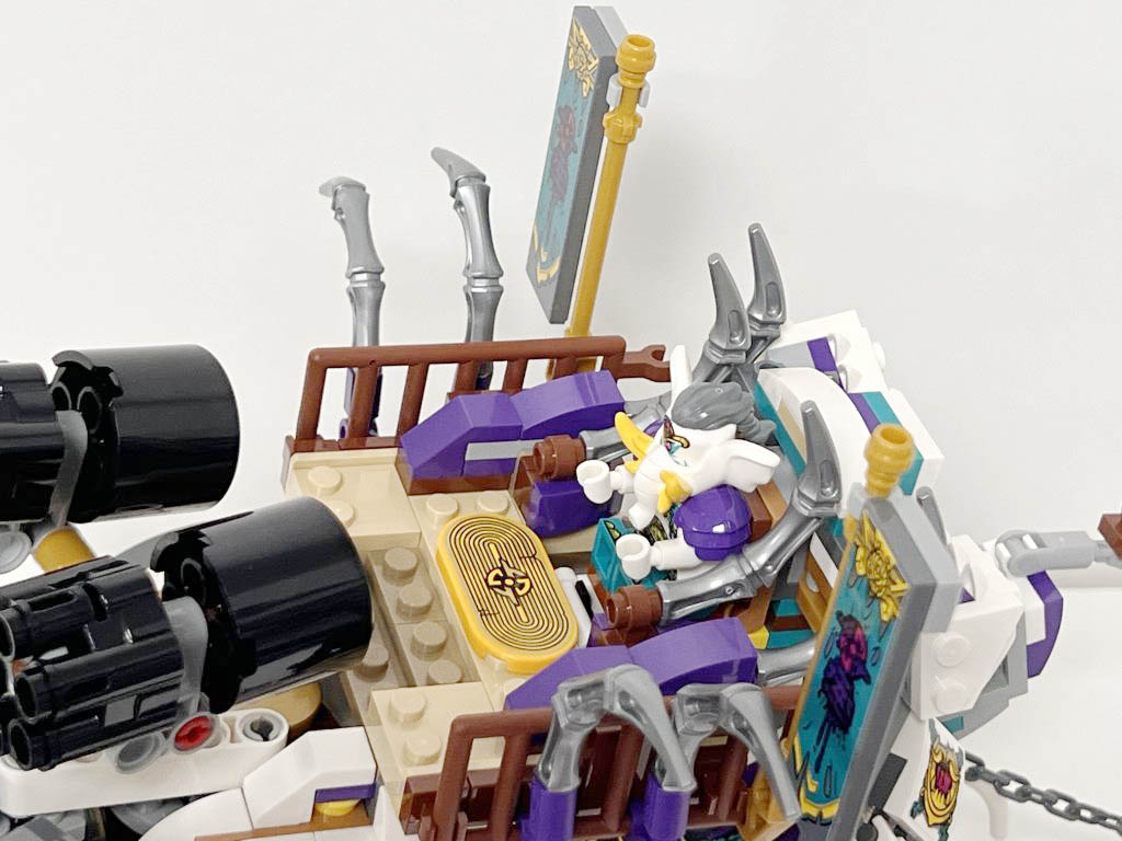 Voilà un éléphant de guerre lourdement armé ! Je le trouve réussi, tout comme le mécha de Yellow Tusk Elephant. Et de belle minifigs encore dans cette gamme.