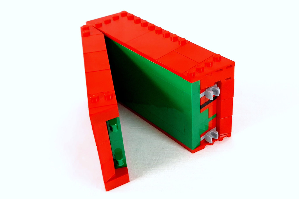 Le V trouve sa forme grâce à une charnière à la base avant de le fixer aux connecteurs sous le L.