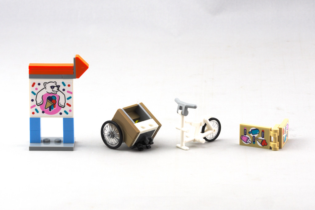 La construction n’apporte pas de difficulté particulière, tout comme les rares autocollants. Il sera rapidement monté, ce qui est bien adapté pour de jeunes constructeurs. Avec trois minifigs, son vélo cargo et de nombreux petits accessoires, comme les cornets glaces, un ballon, ou encore un emballage (vide) de cadeau, on se retrouve avec un petit set qui offre une très bonne jouabilité.