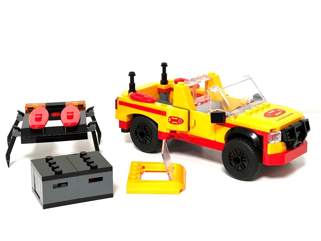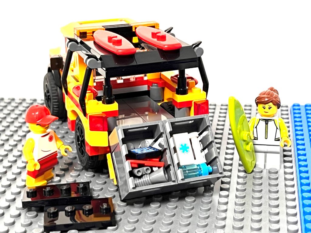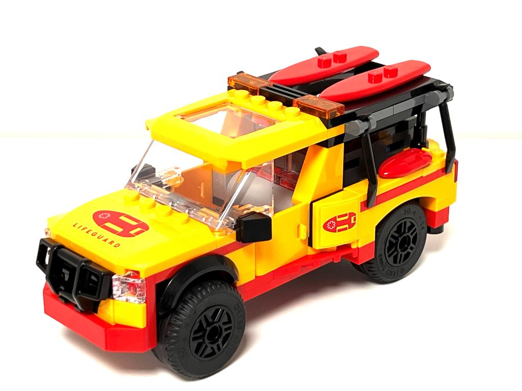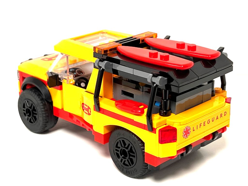 Super véhicule de secours pour la plage ! Les précédents du thème étaient plutôt des petits quad. J’adore son look et ses couleurs. Les portes et le toit ouvrant avec cette nouvelle pièce me ramène aux véhicules des années 80/90 qui avaient cette fonction.